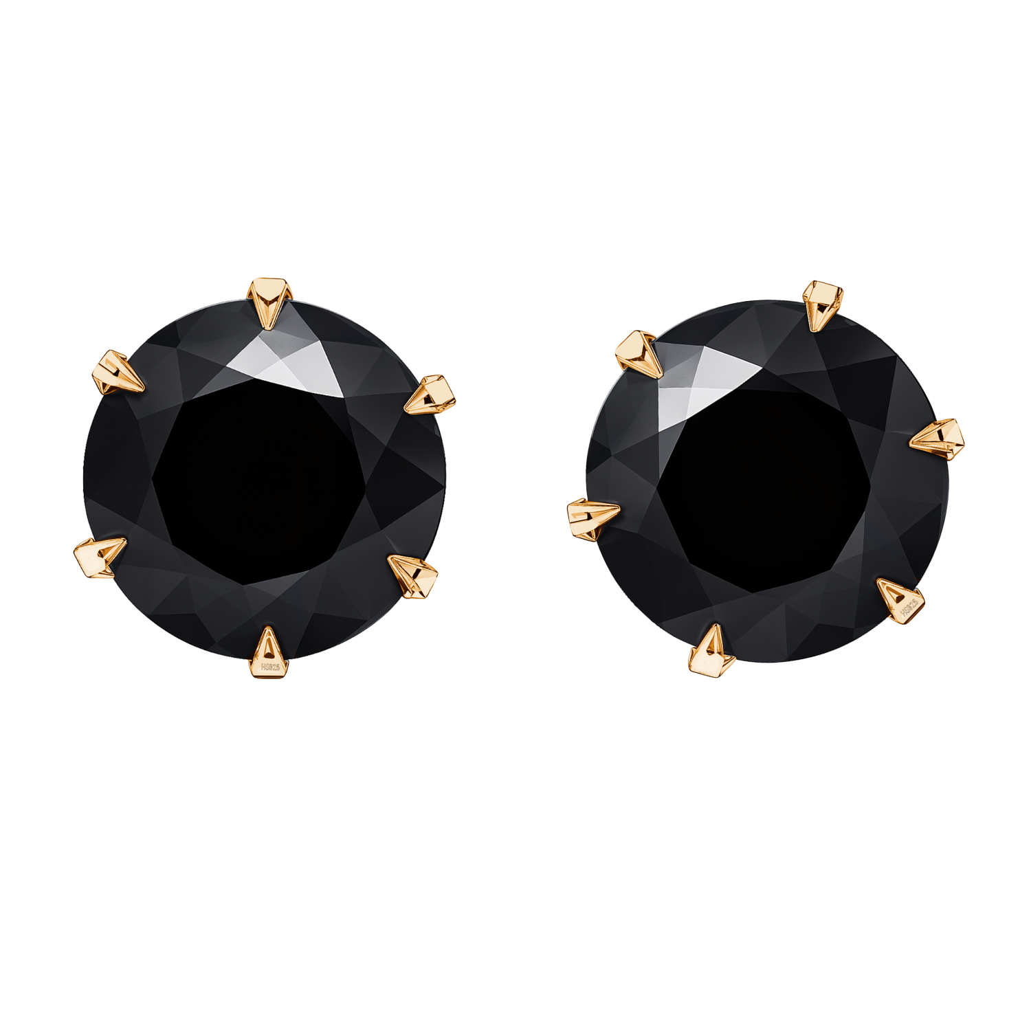 Gold Solitaire Black Round Stud Earrings - 92.5 Silver - Black Brilliant Zirconia Tops - 18k Gold Finish