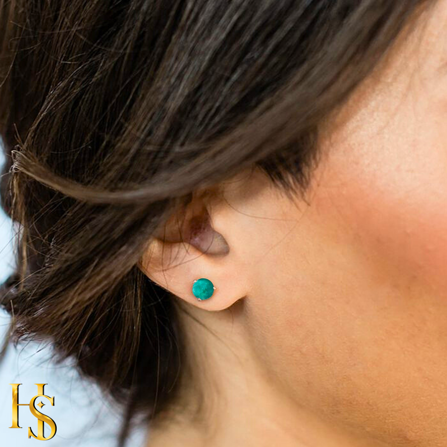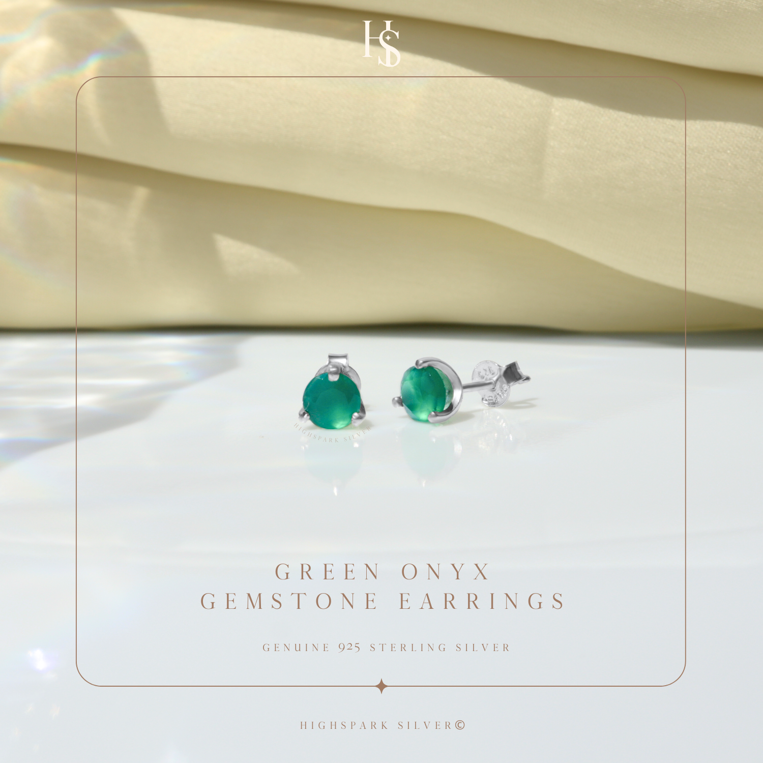 Green onyx Gemstone Stud Earrings in 925 Sterling Silver For Women