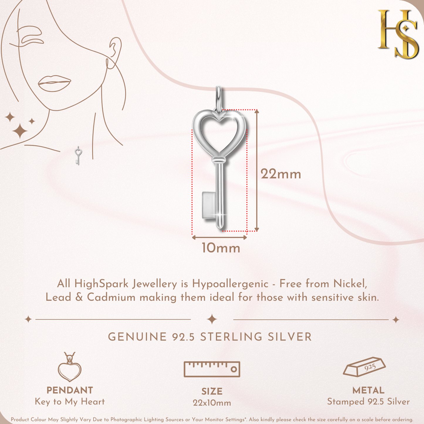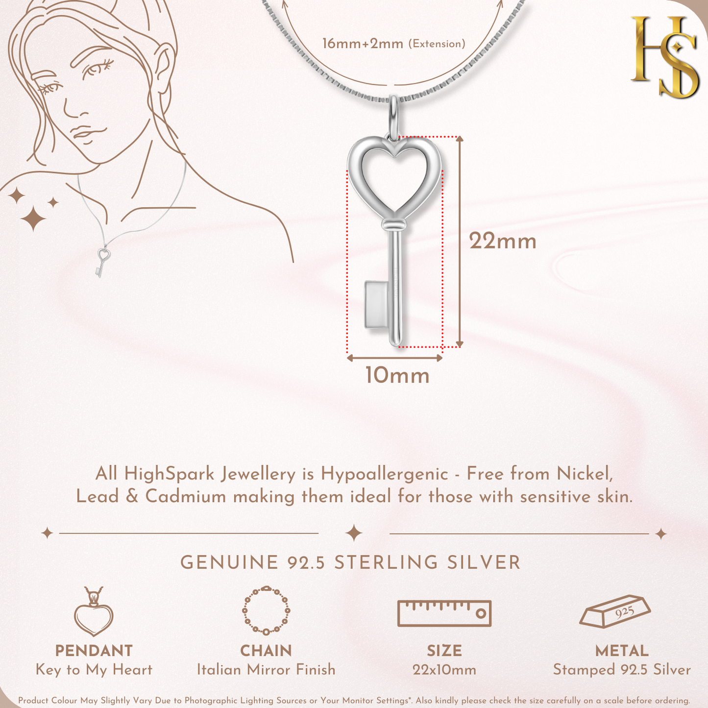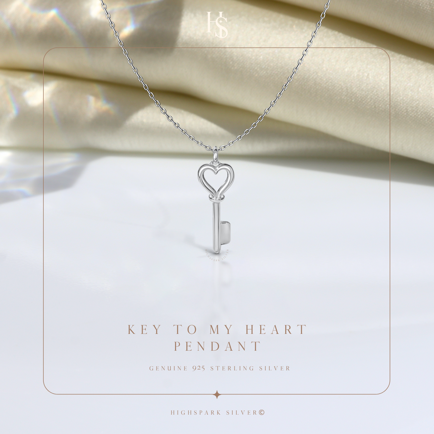 Heart Key Pendant in 92.5 Sterling Silver For Women