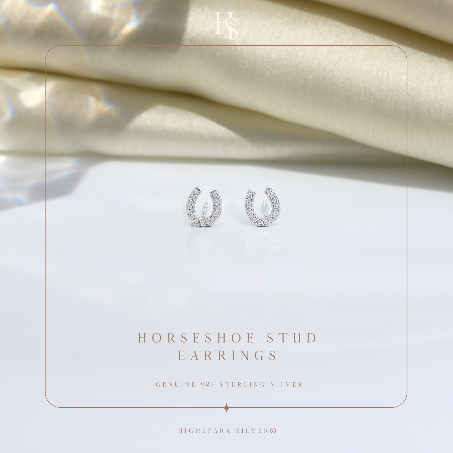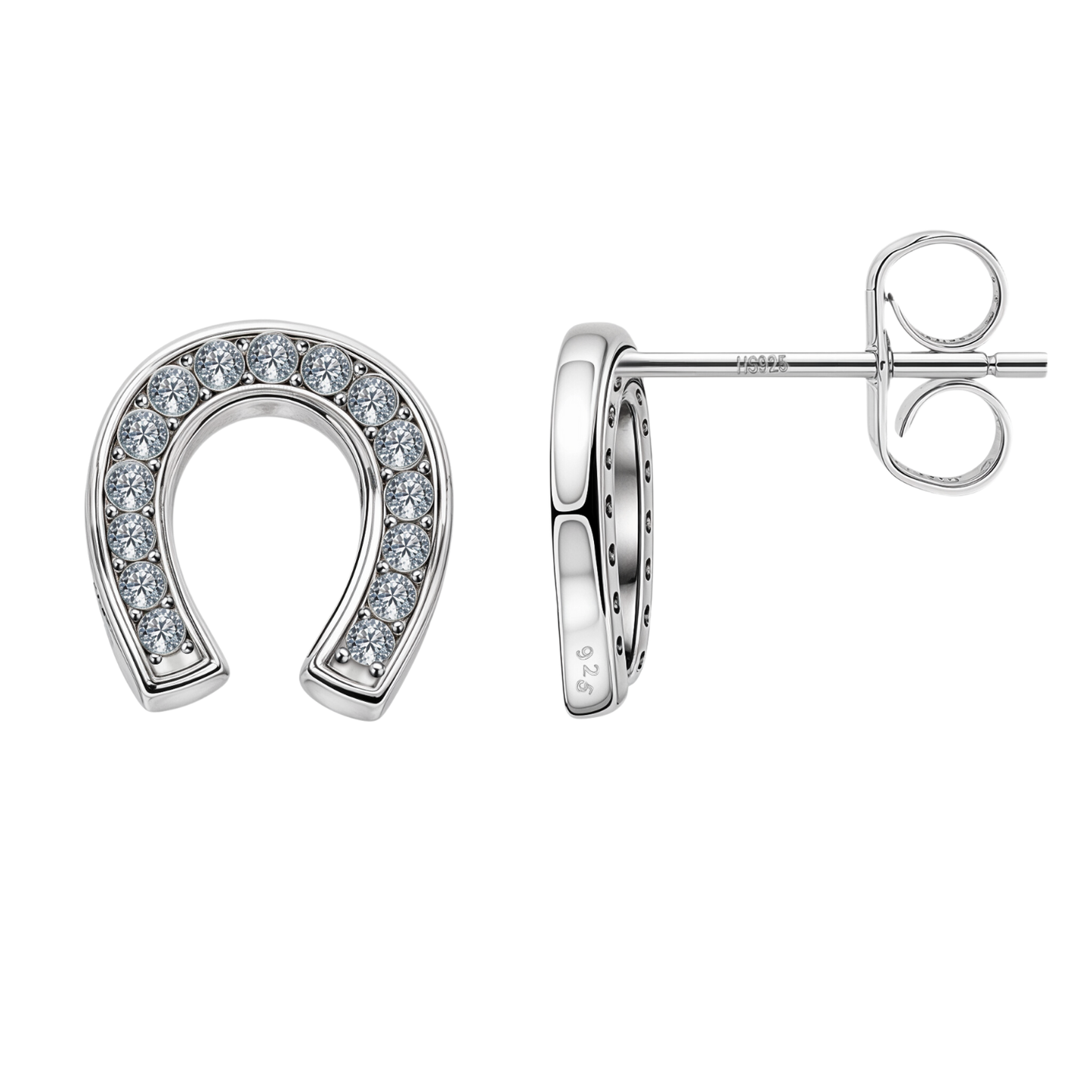 Horseshoe Stud Earrings in 92.5 Sterling Silver with Diamond like Brilliance Zirconia