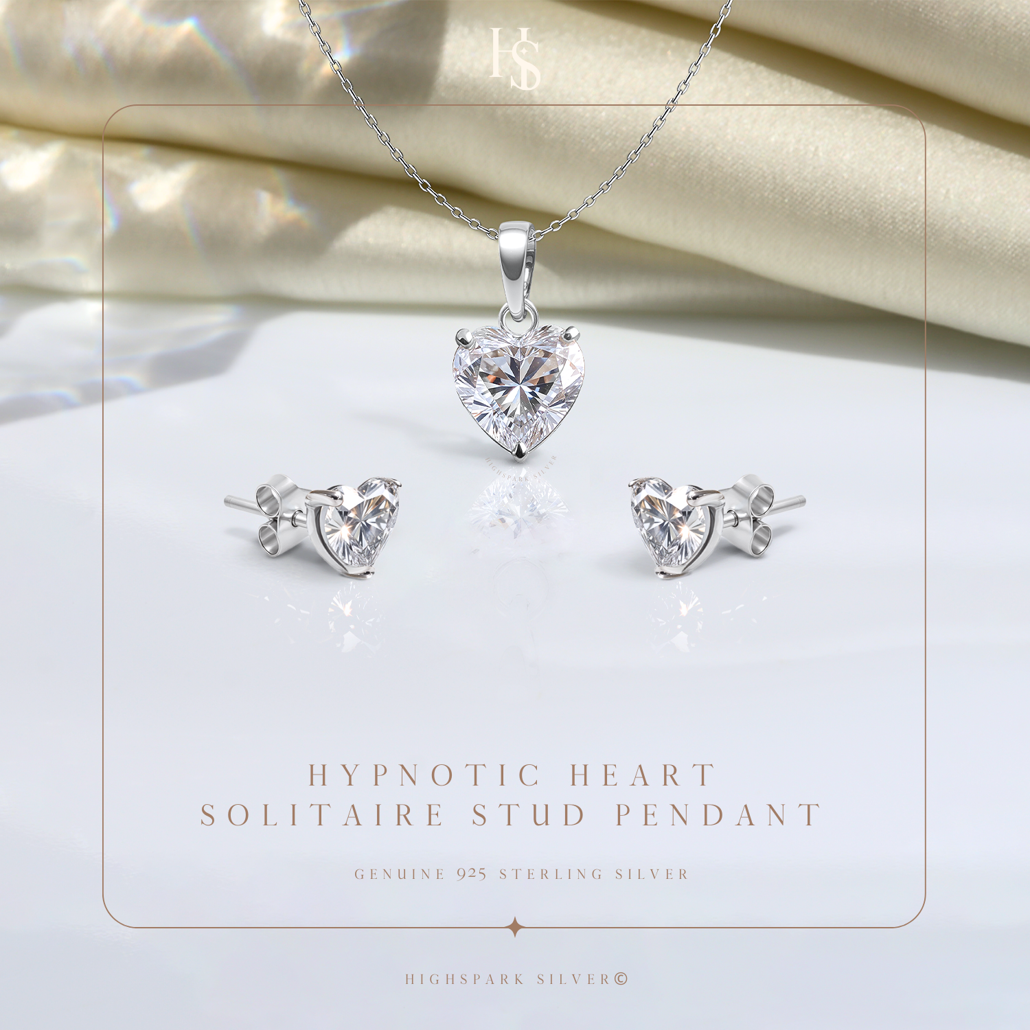 Hypnotic Heart Solitaire Stud Pendant-Set With Earrings in 925 Sterling Silver For Women