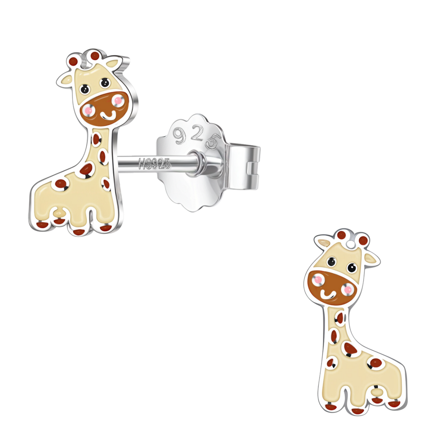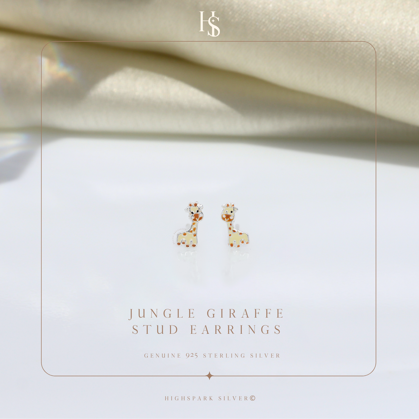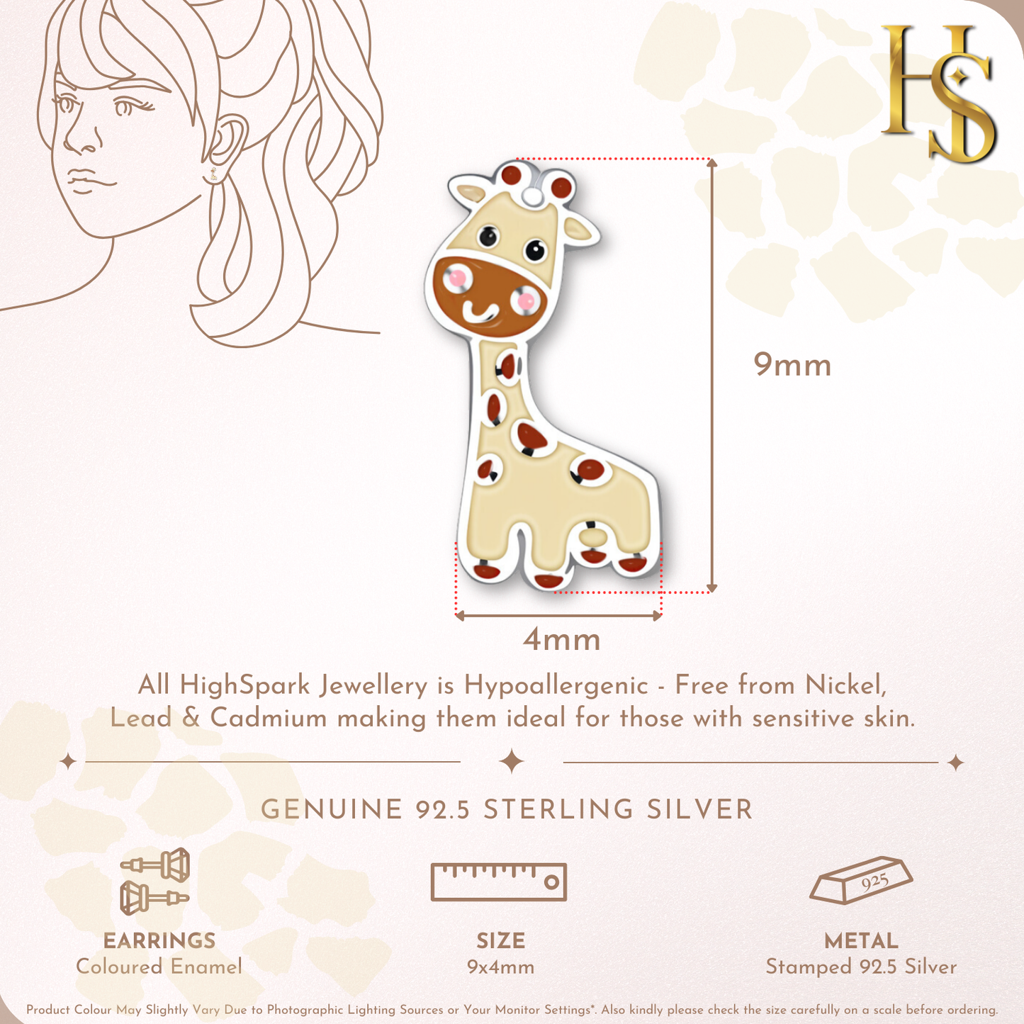 Jungle Giraffe Cute Enamel Stud Earrings in 925 Sterling Silver