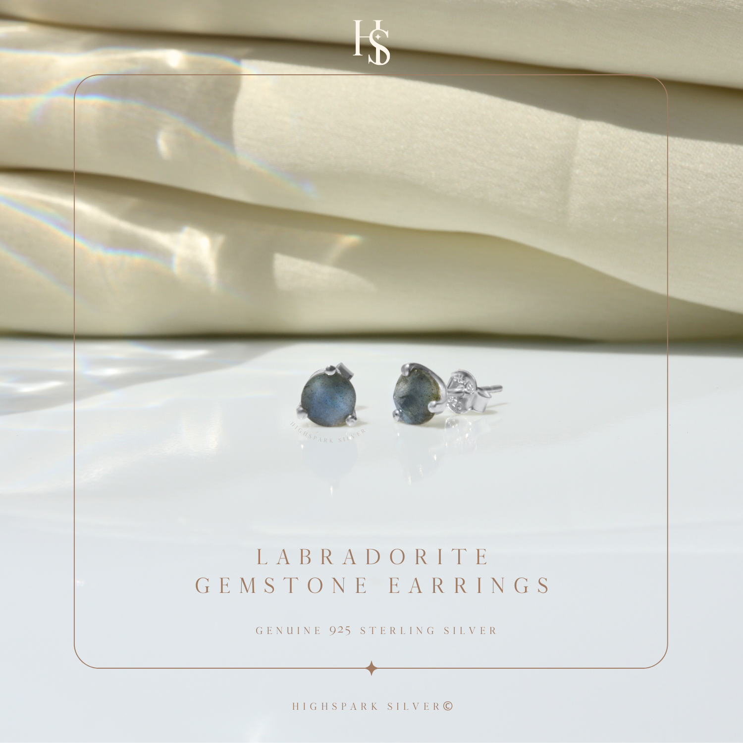 Labradorite Gemstone Stud Earrings in 925 Sterling Silver For Women