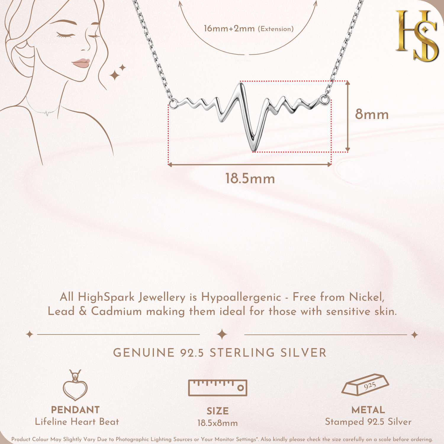 Lifeline Heart Beat Necklace in 92.5 Sterling Silver For Women