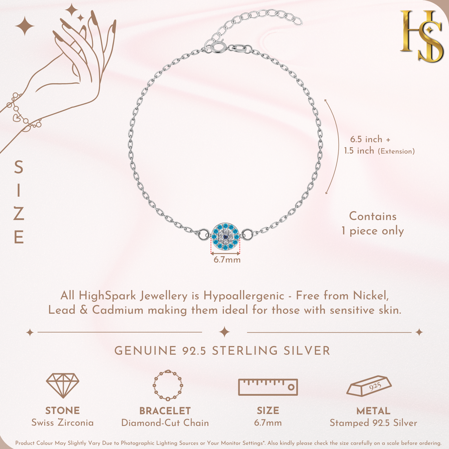 Light Blue Sparkling Evil Eye Bracelet In 925 Sterling Silver For Women