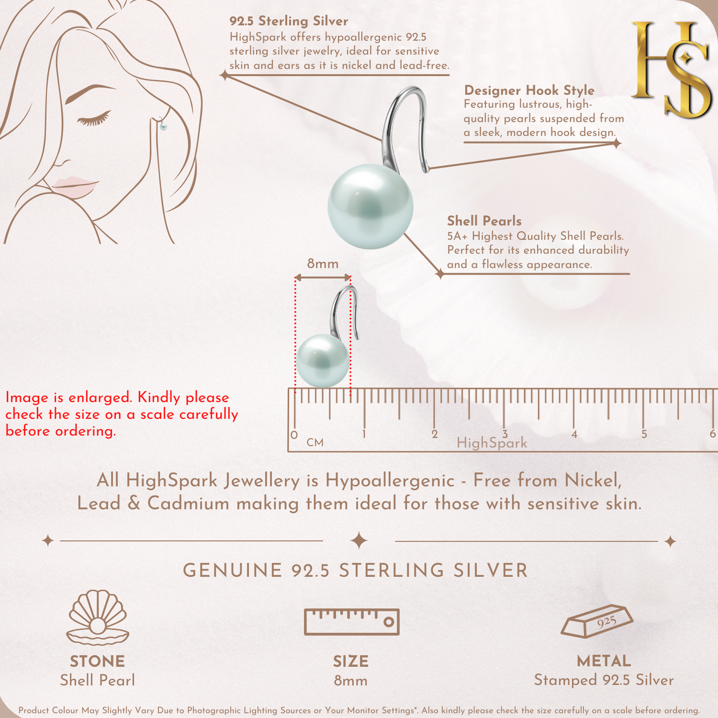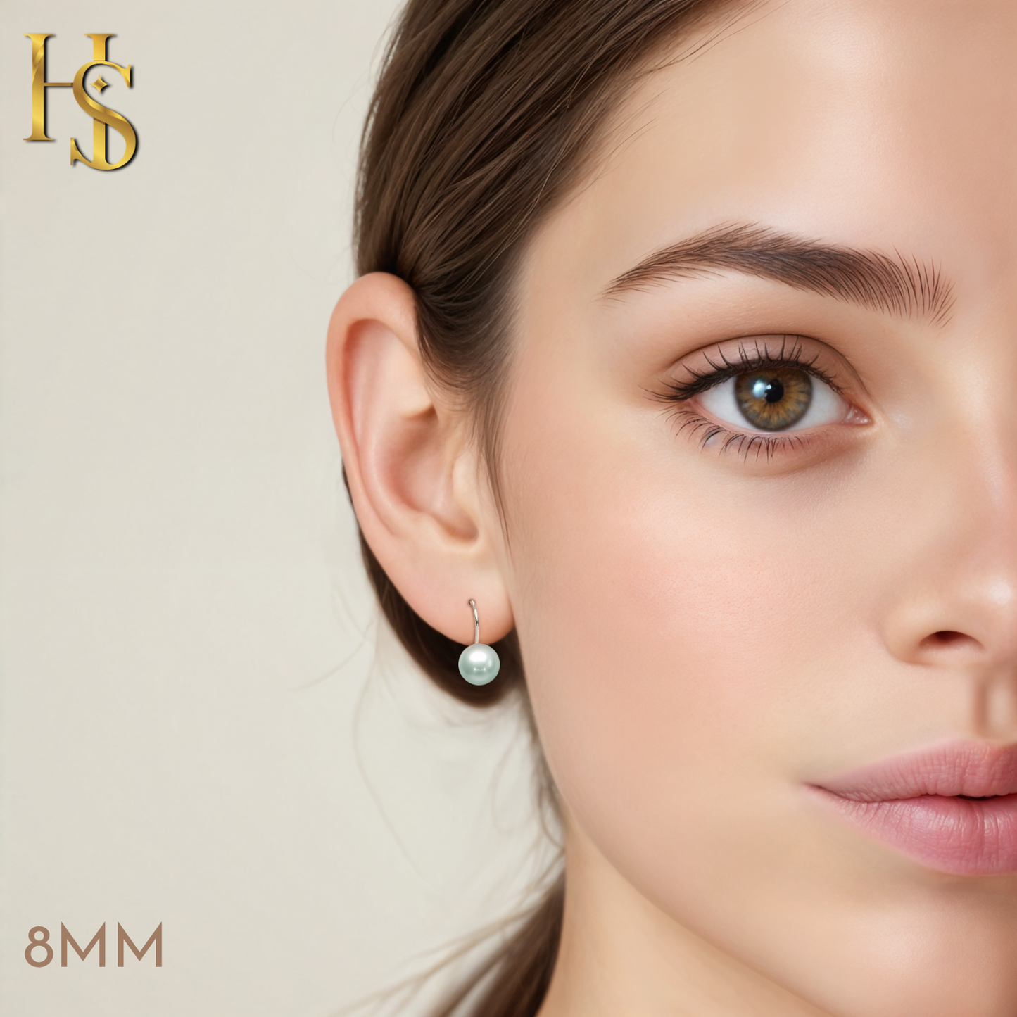 Light Blue Stylish Round Pearl Earrings in Hook Design