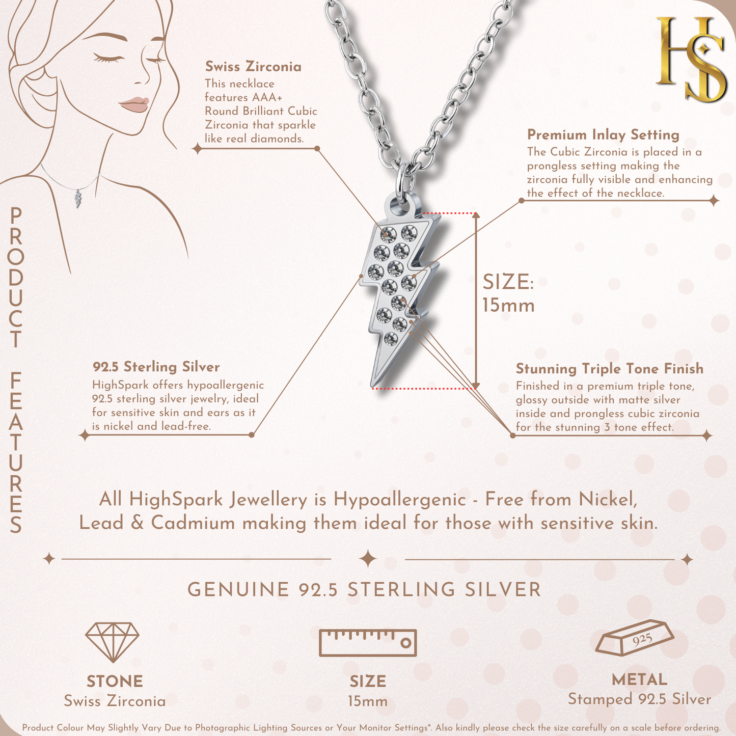 Lightning Bolt Pendant & Chain in 925 Sterling Silver for Women With Diamond like Brilliance Zirconia