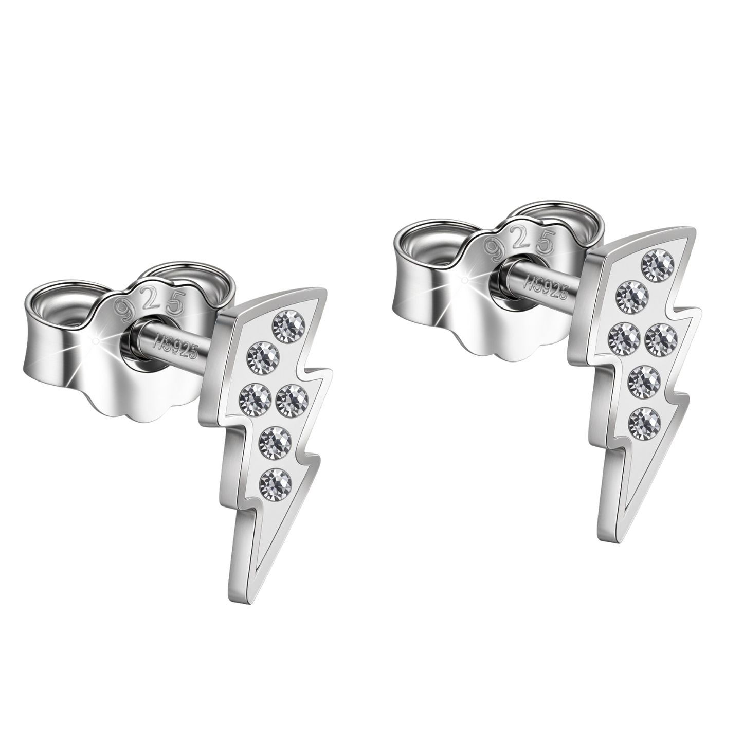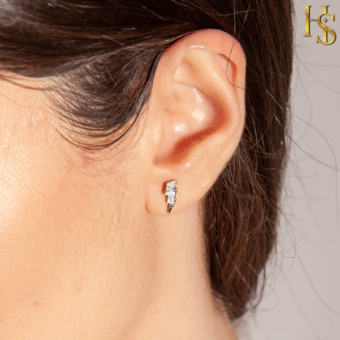 Lightning Bolt Stud Earrings in 925 Sterling Silver for Women With Diamond like Brilliance Zirconia
