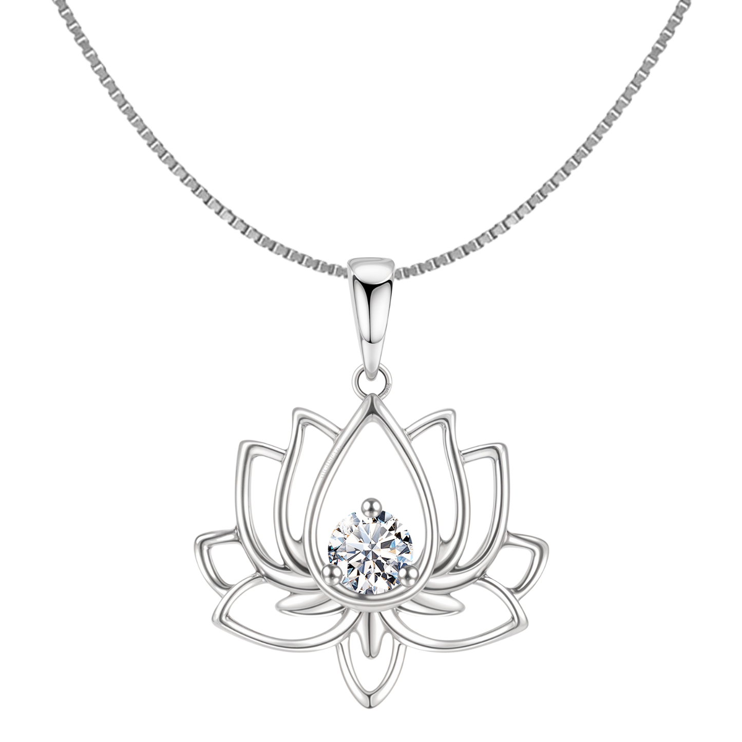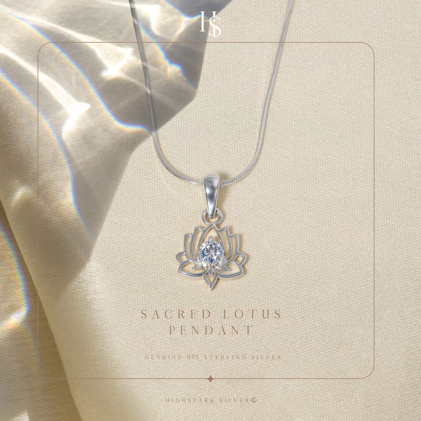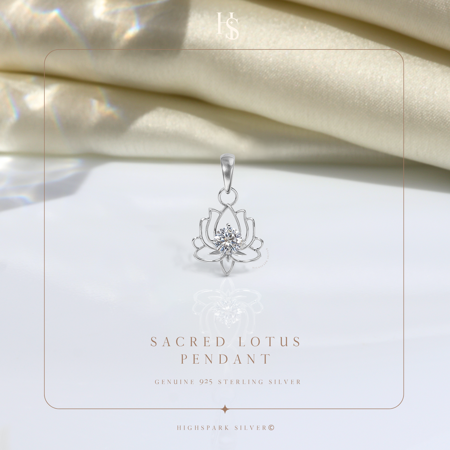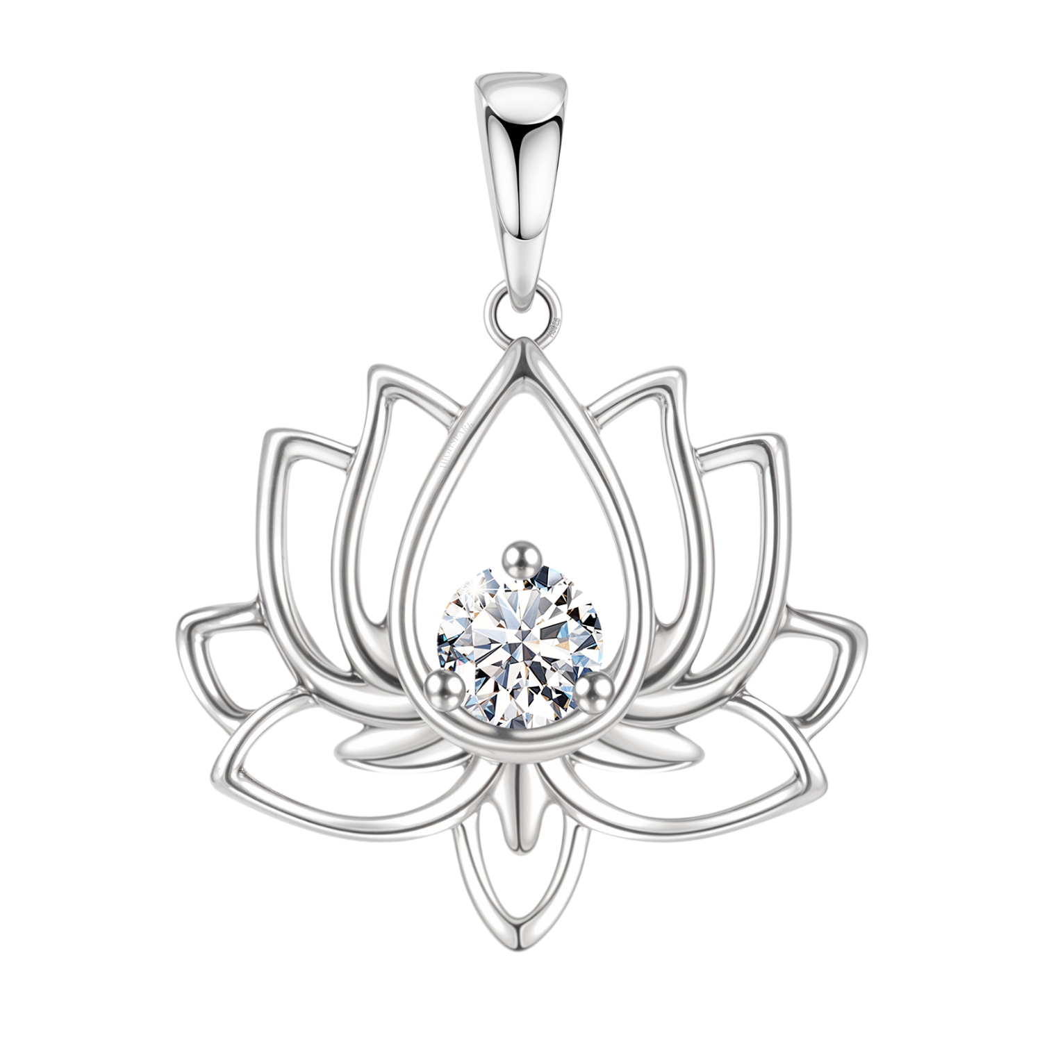 Lotus Solitaire Pendant in 92.5 Sterling Silver With Diamond like Brilliance Zirconia