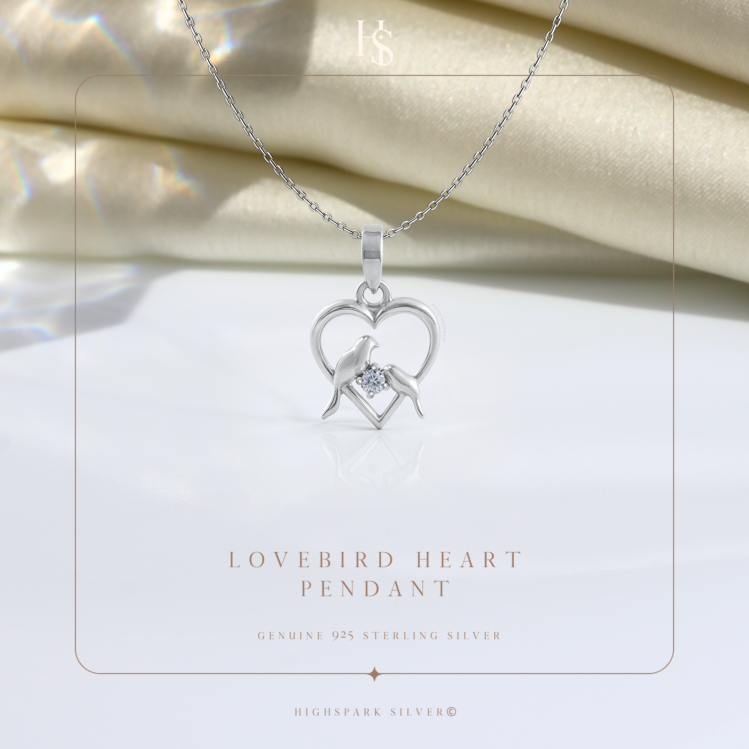 Lovebird Heart pendant in 925 Sterling Silver For Women
