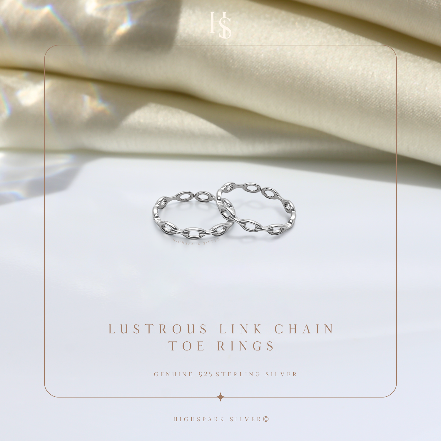 Lustrous Link Chain Toe Rings - Adjustable in 925 Sterling Silver - 2 Piece