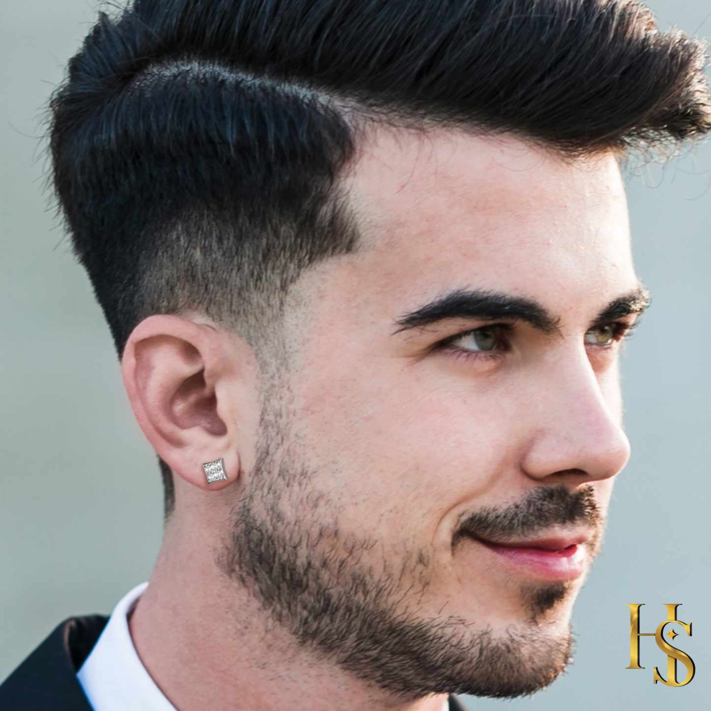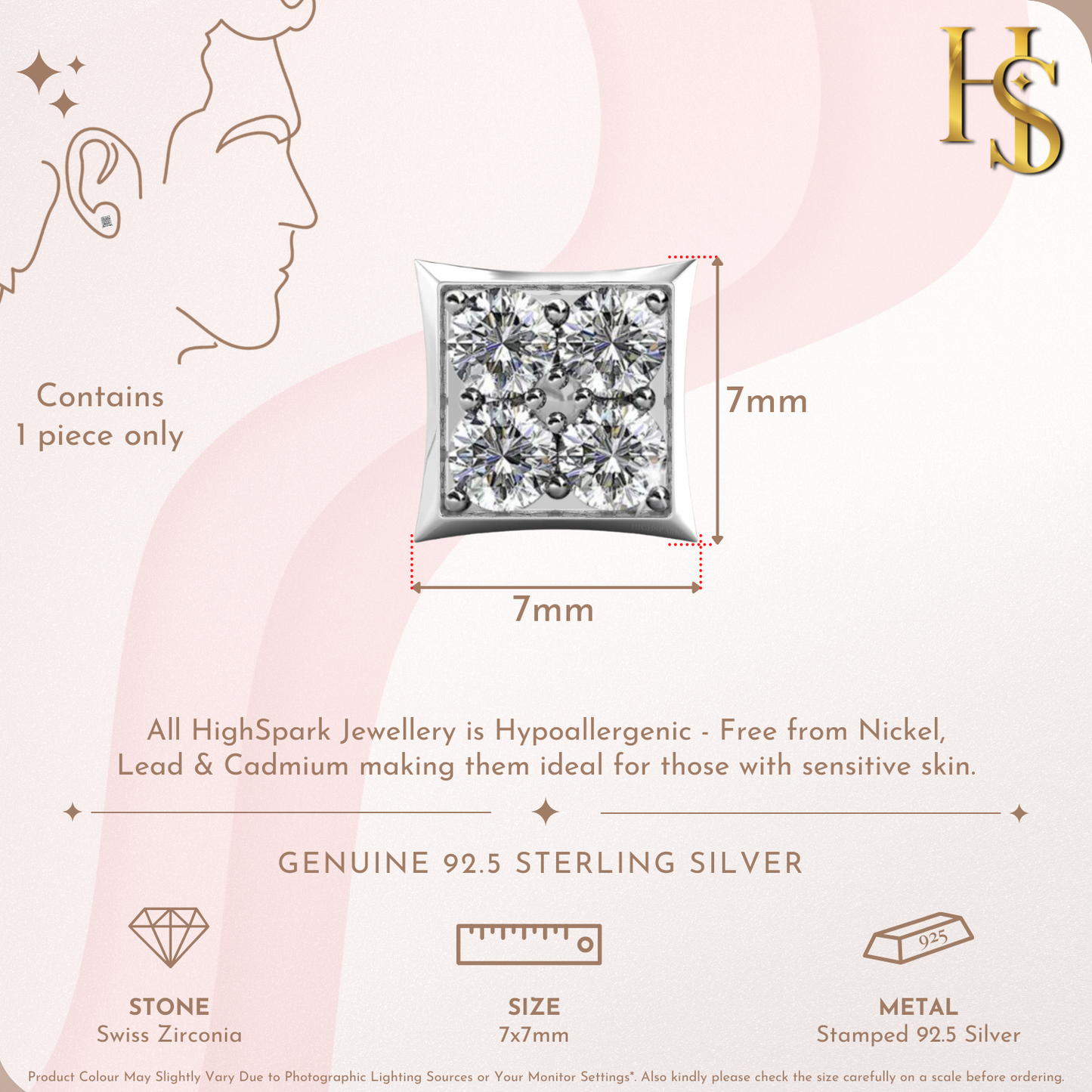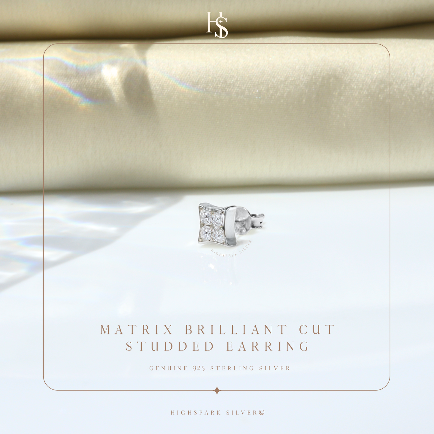 Matrix Brilliant Cut Studded Earring in 925 Sterling Silver with Diamond like Brilliance Zirconia for Mens