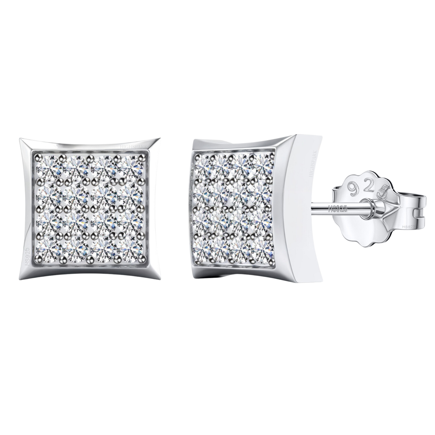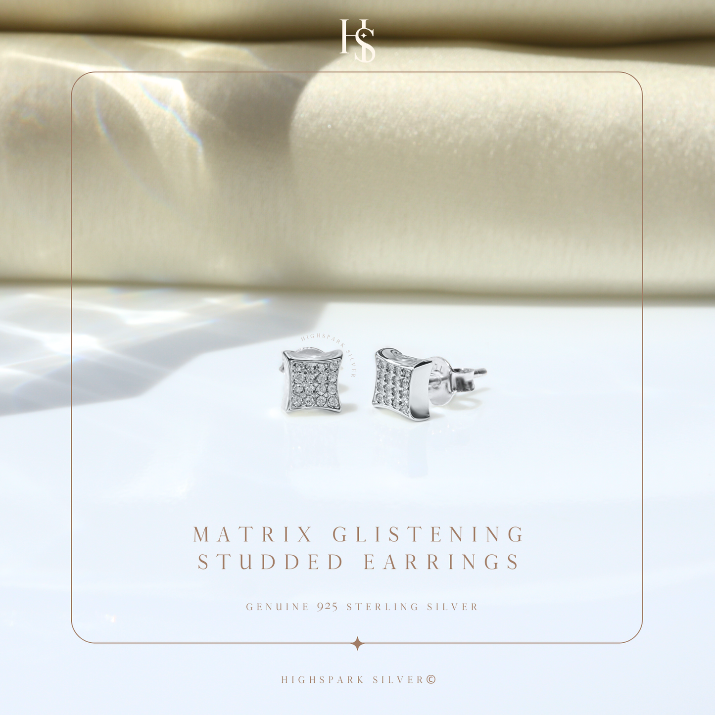 Matrix Glistening Studded Earrings in 925 Sterling Silver with Diamond like Brilliance Zirconia