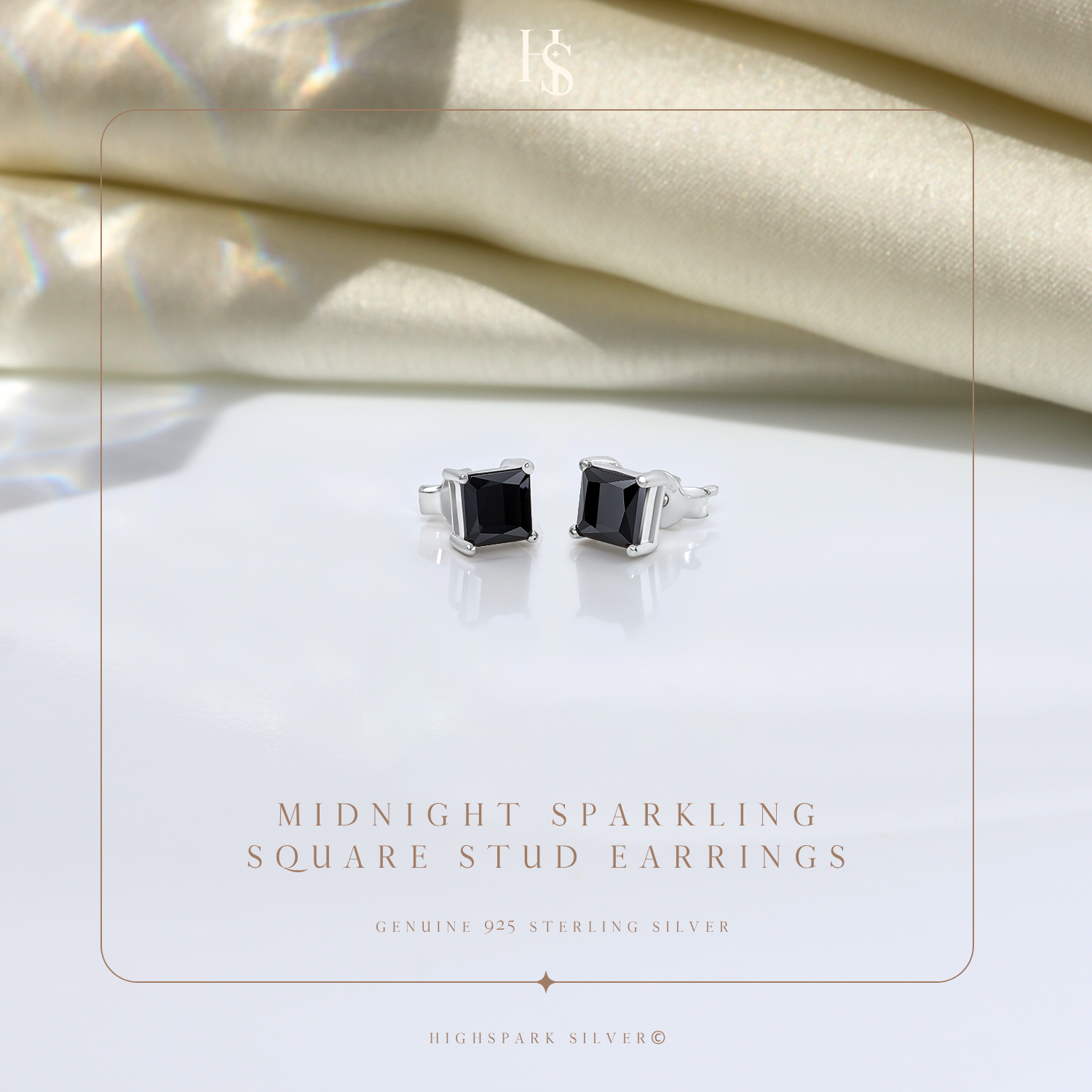 Midnight Sparkling Square Stud Earrings in 925 Sterling Silver For Women