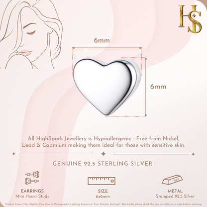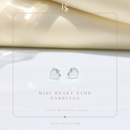 Mini Heart Stud Earrings in 925 Sterling Silver for Women
