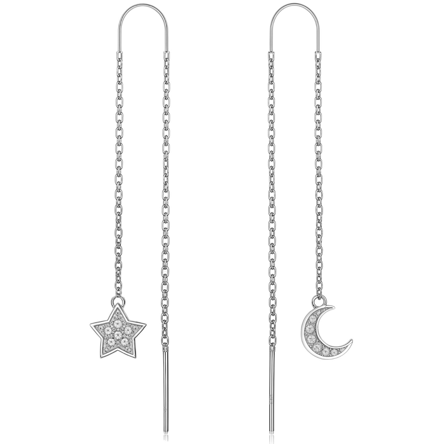 Mini Twinkling Star And Mini Crescent Moon Solitaire Earrings in 92.5 Sterling Silver With Diamond like Brilliance Sparkling Zirconia