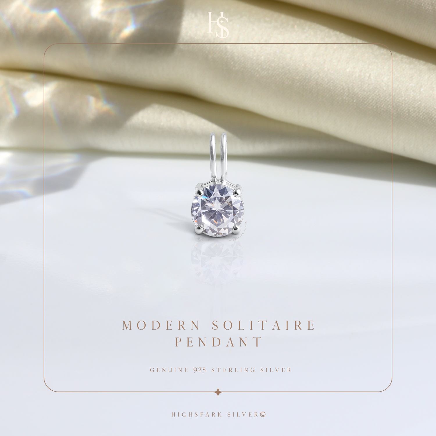 Modern Solitaire Pendant With Chain in 925 Sterling Silver For Women