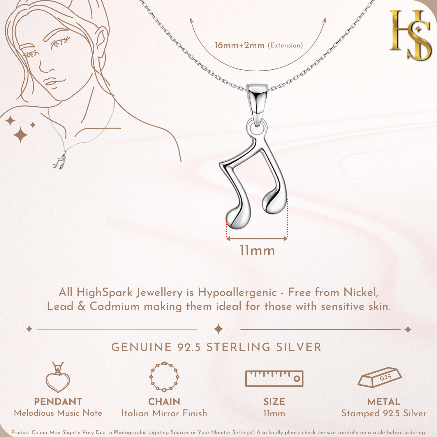 Music Note Pendant in 92.5 Sterling Silver For Women