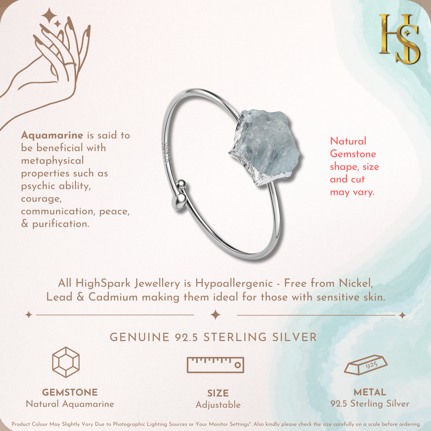 Natural Raw Gemstone Aquamarine Rough Cut Adjustable Ring in 92.5 Sterling Silver