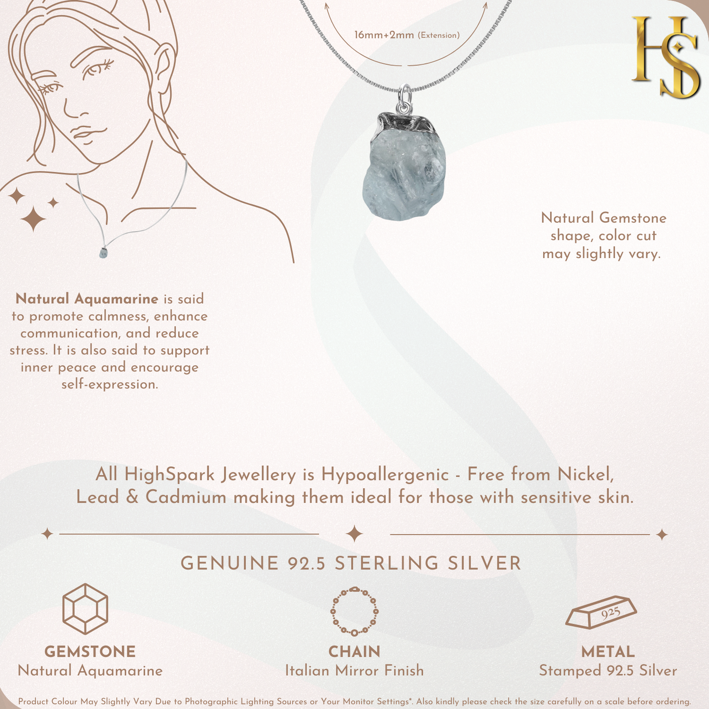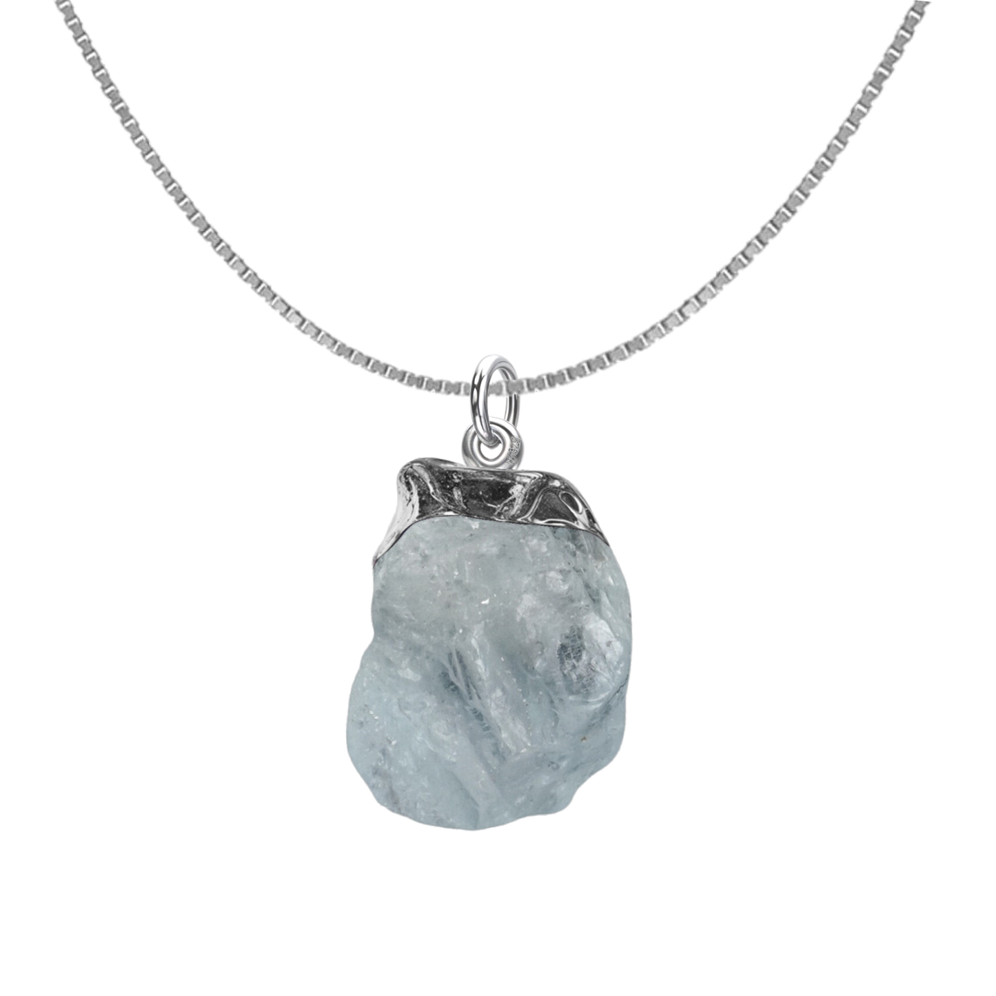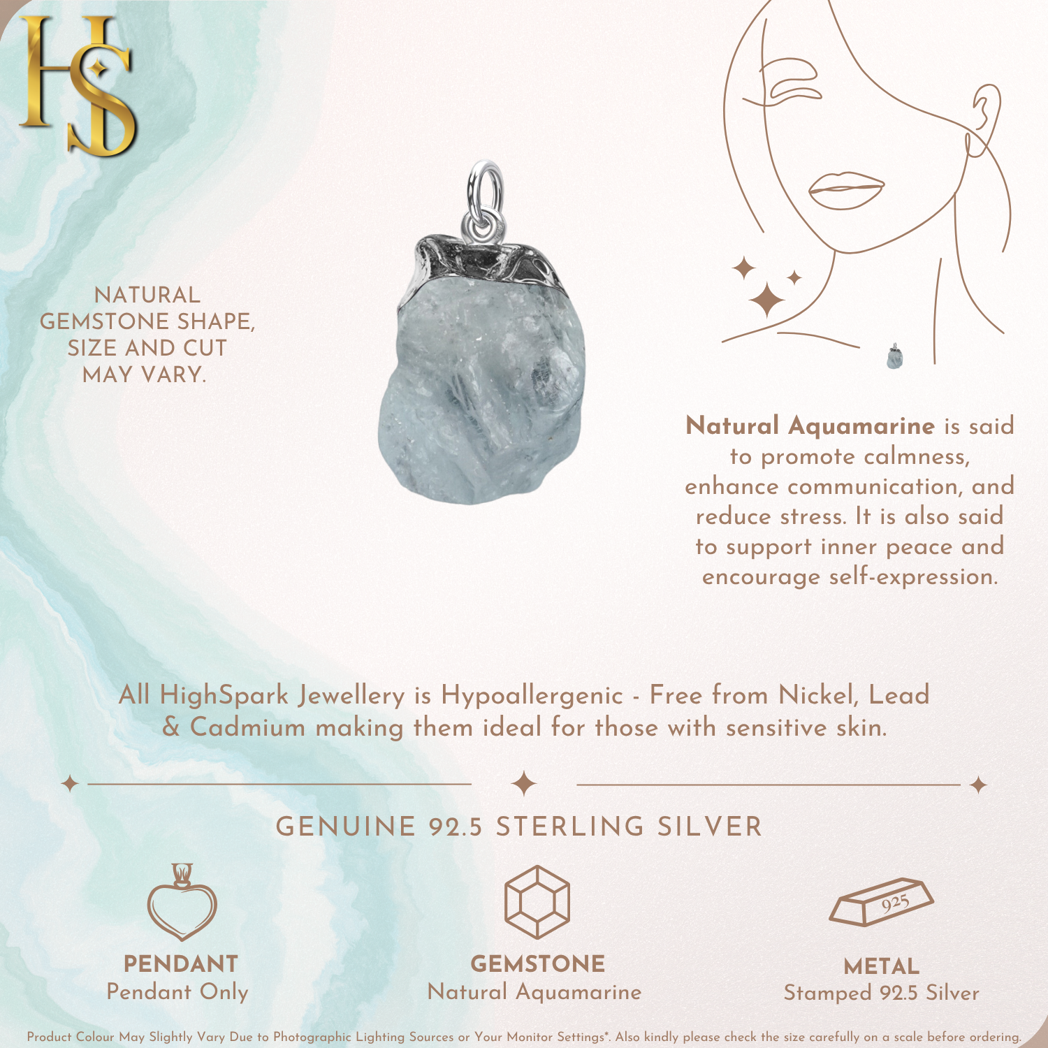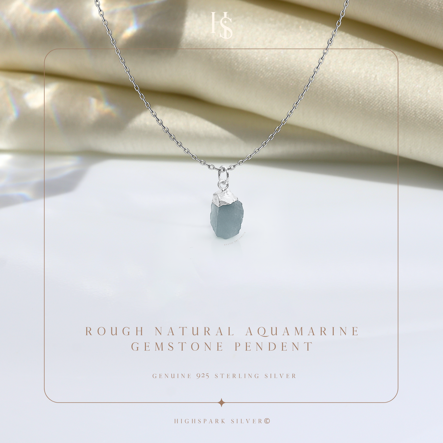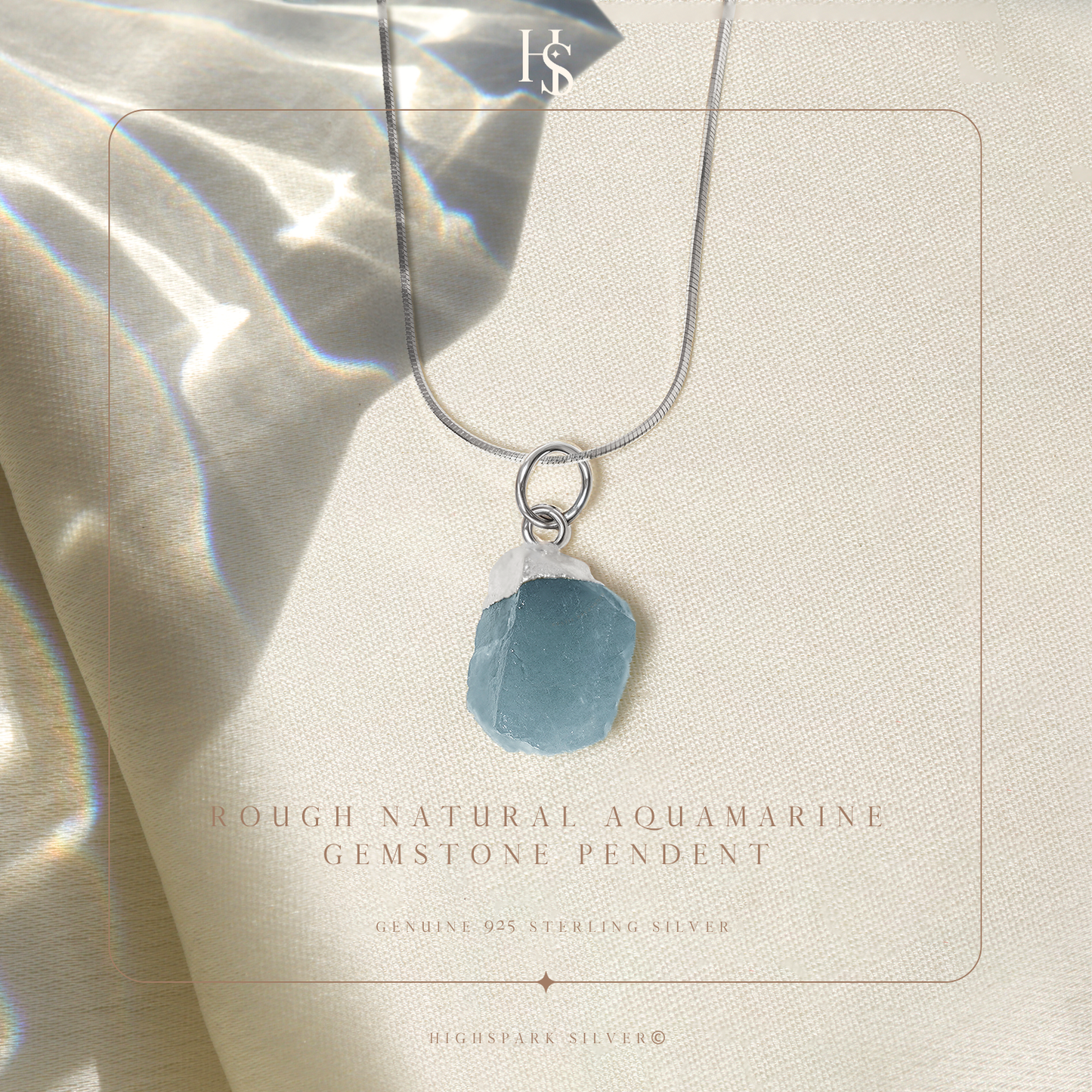 Natural Raw Gemstone Aquamarine Rough Cut Pendant in 92.5 Sterling Silver