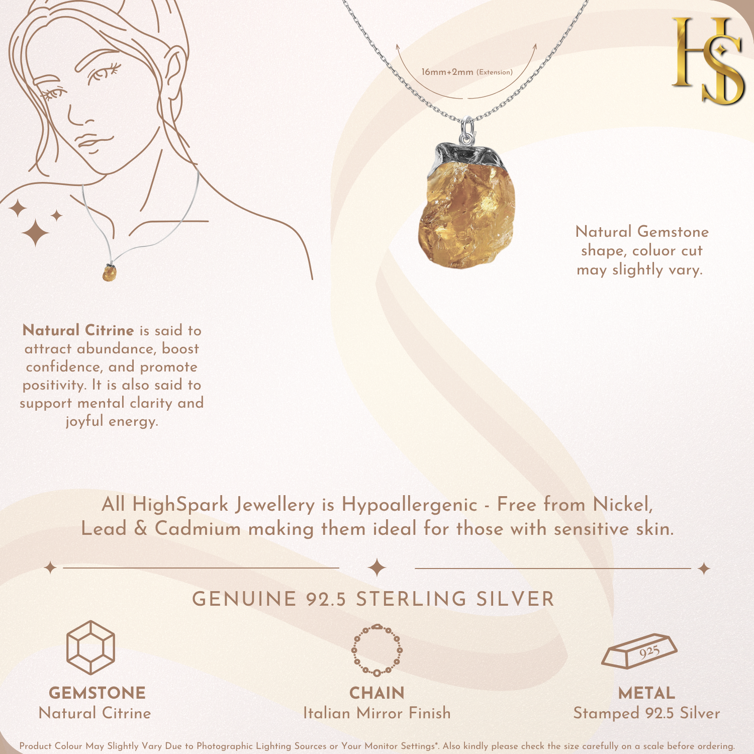 Natural Raw Gemstone Citrine Rough Cut Pendant in 92.5 Sterling Silver
