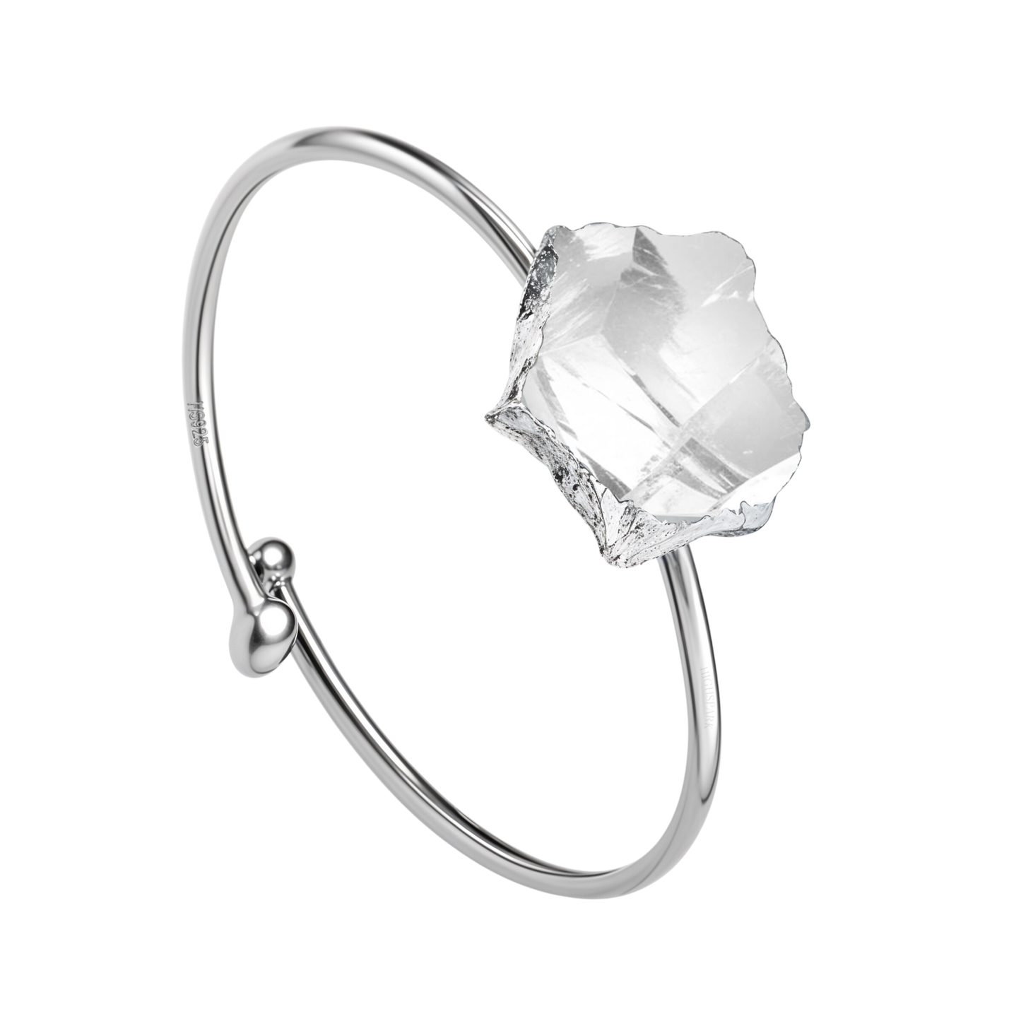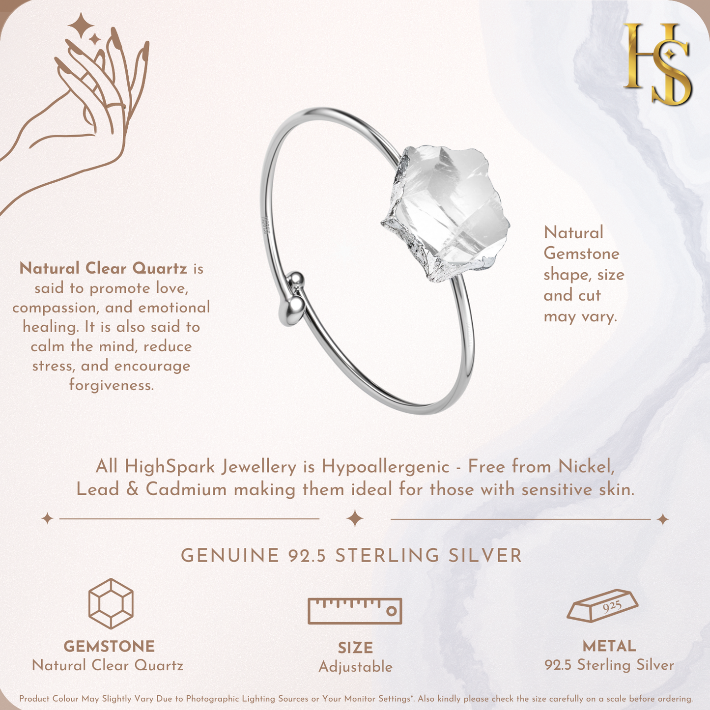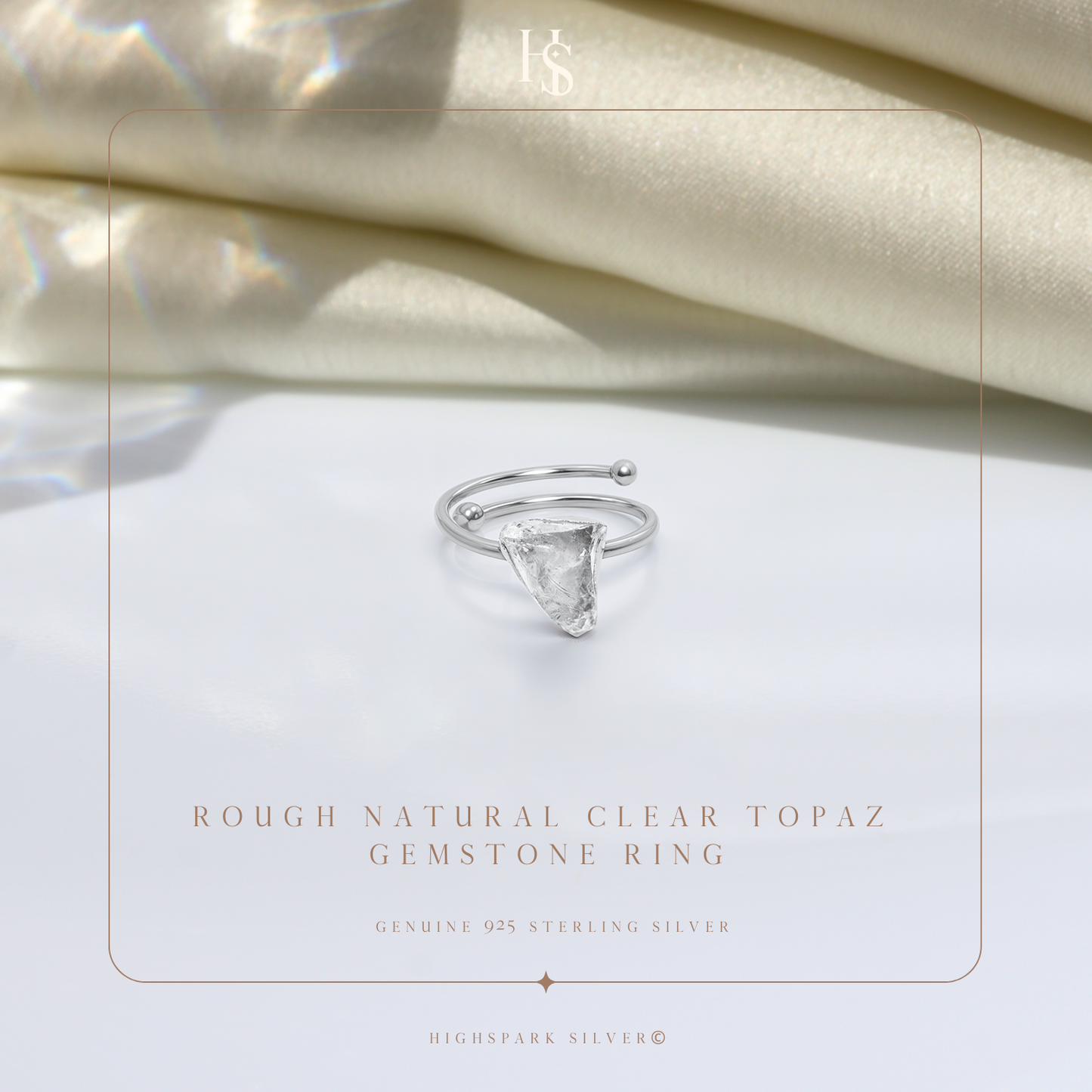 Natural Raw Gemstone Clear Quartz Rough Cut Adjustable Ring in 92.5 Sterling Silver