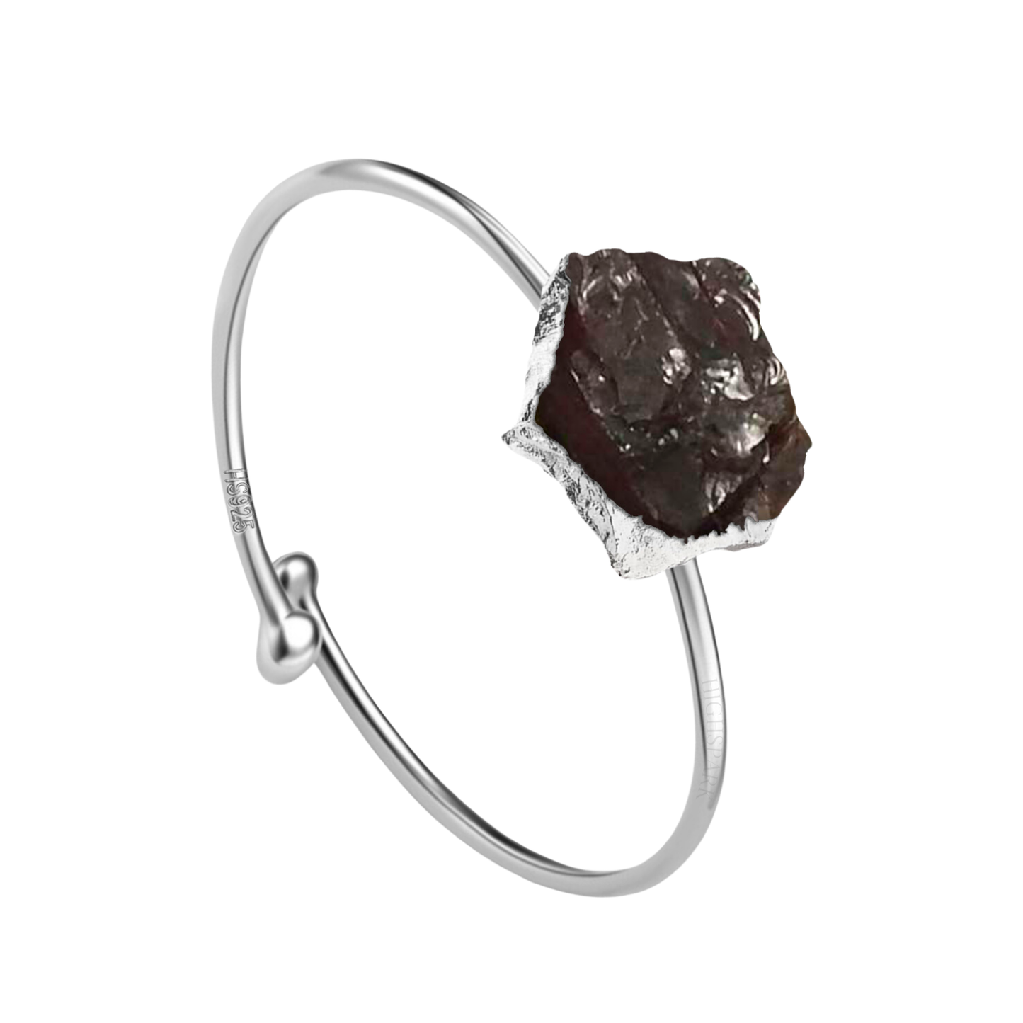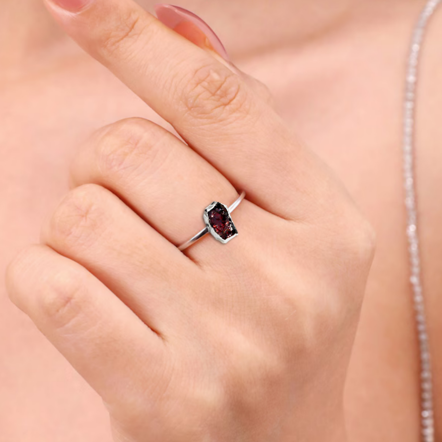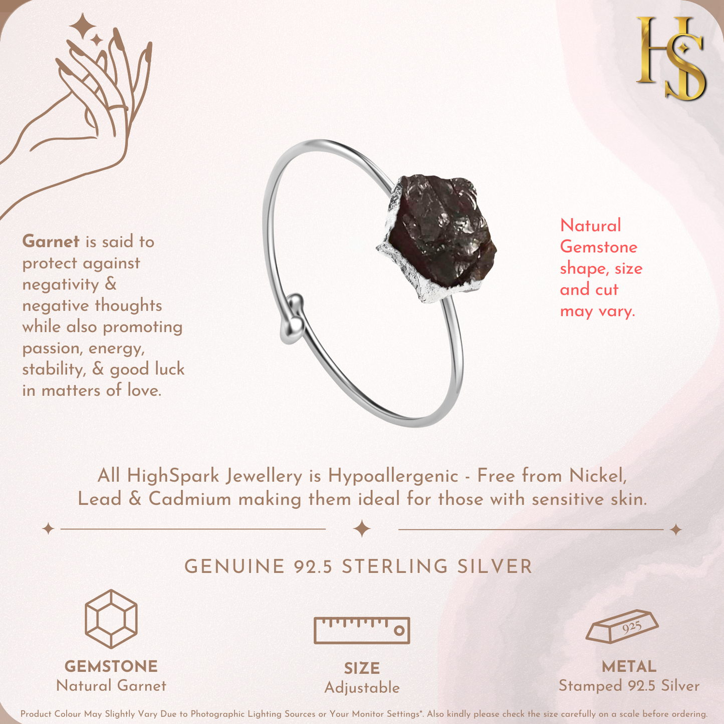 Natural Raw Gemstone Garnet Rough Cut Adjustable Ring in 92.5 Sterling Silver