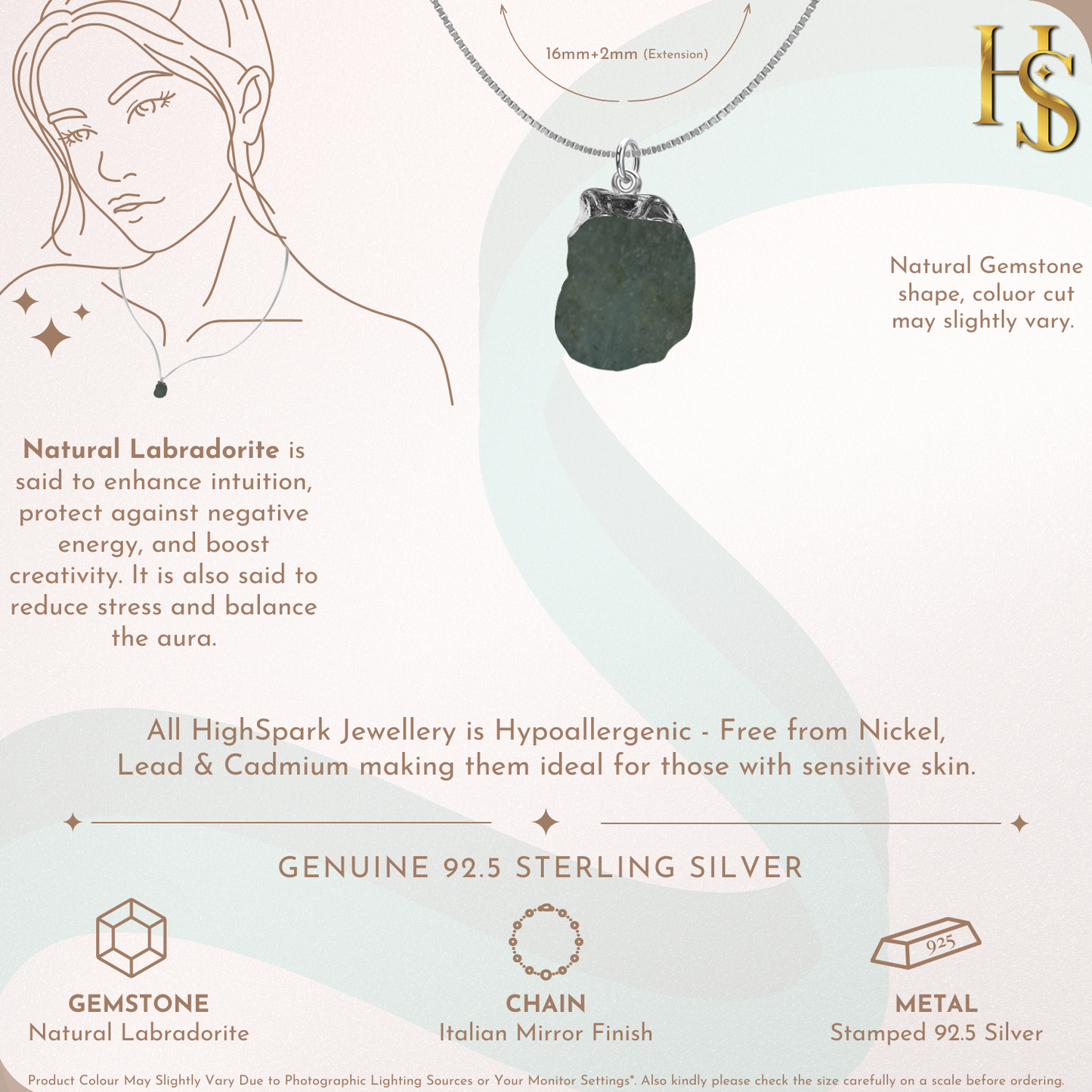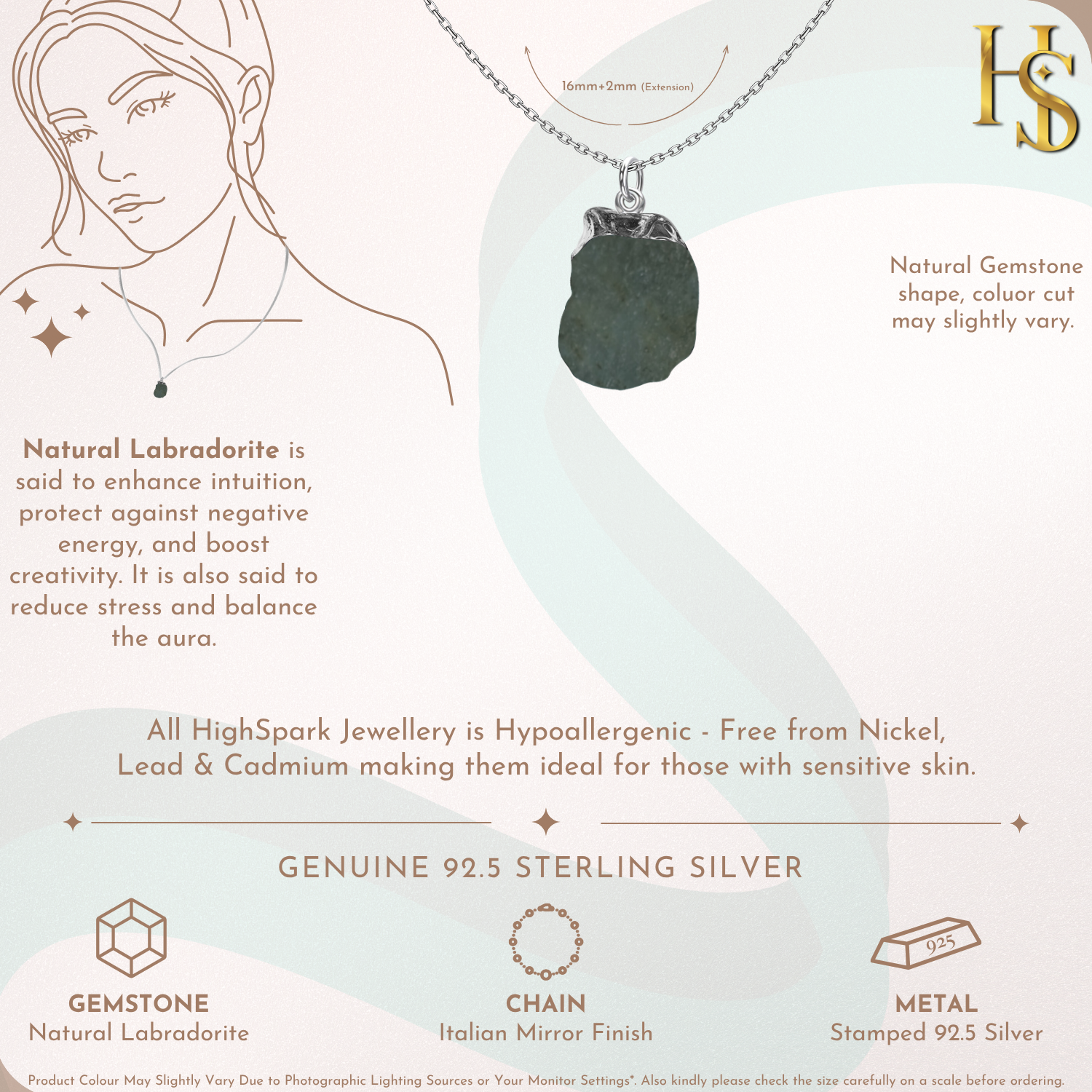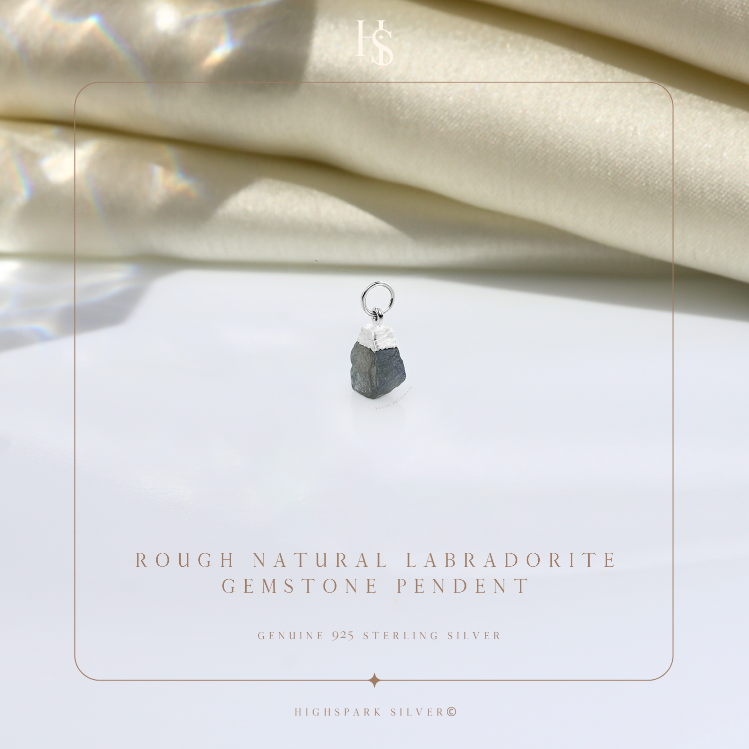 Natural Raw Gemstone Labradorite Rough Cut Pendant in 92.5 Sterling Silver