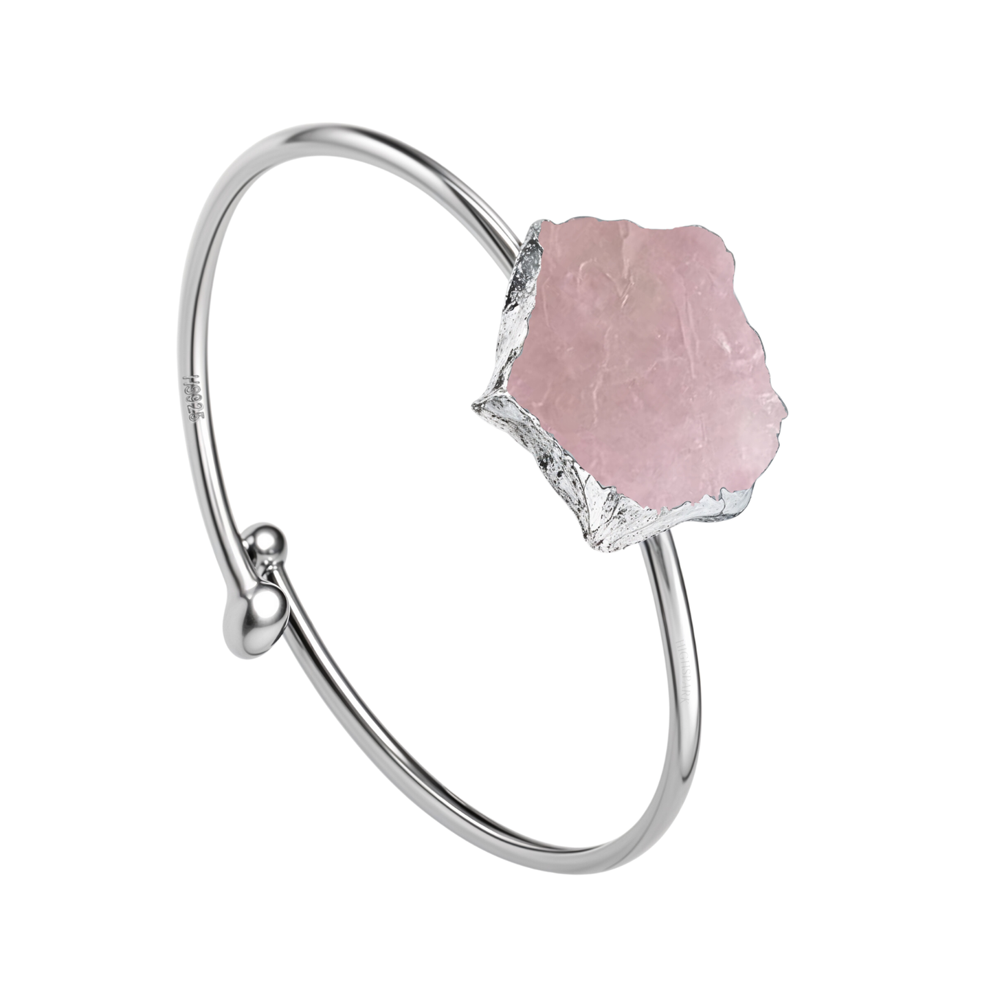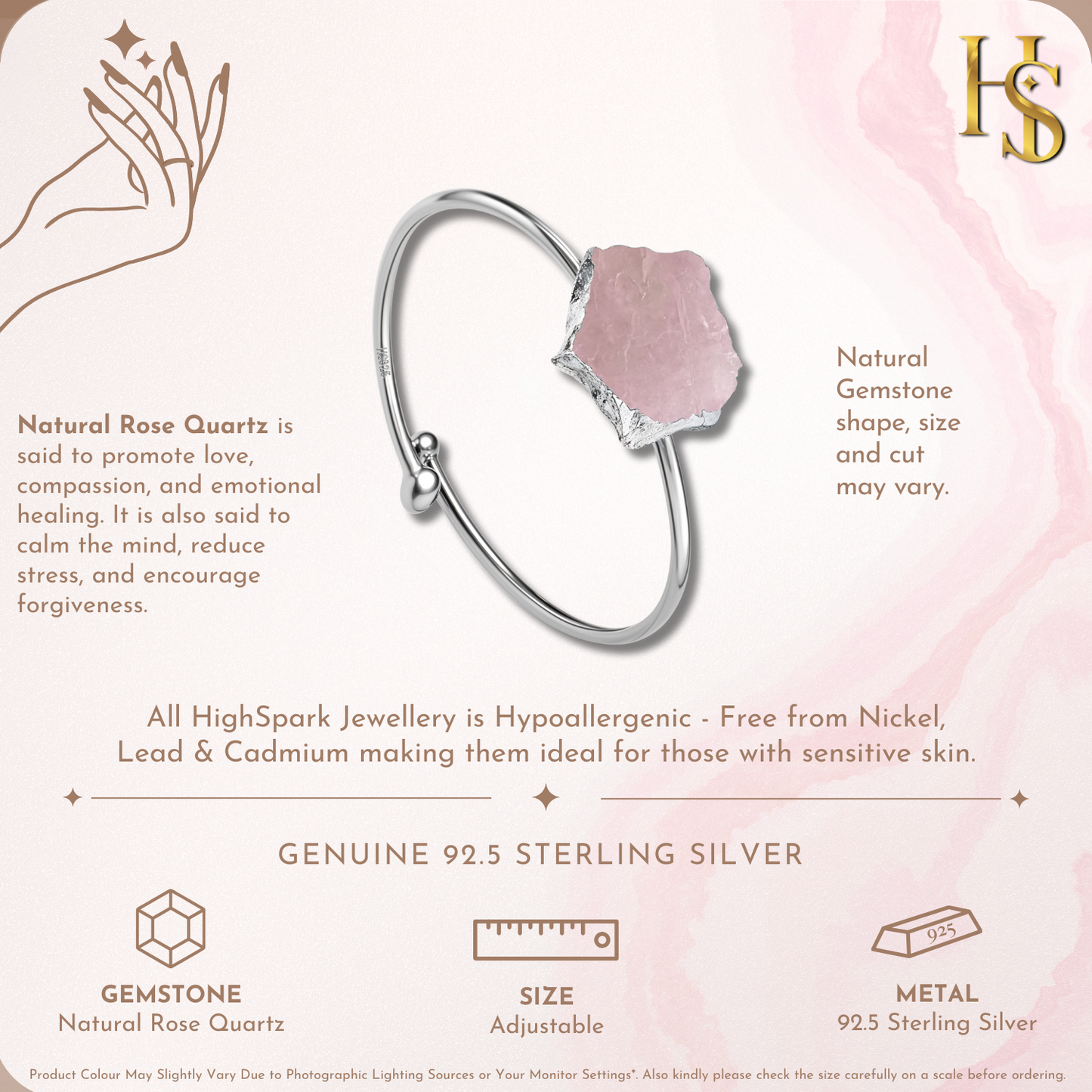 Natural Raw Gemstone Rose Quartz Rough Cut Adjustable Ring in 92.5 Sterling Silver