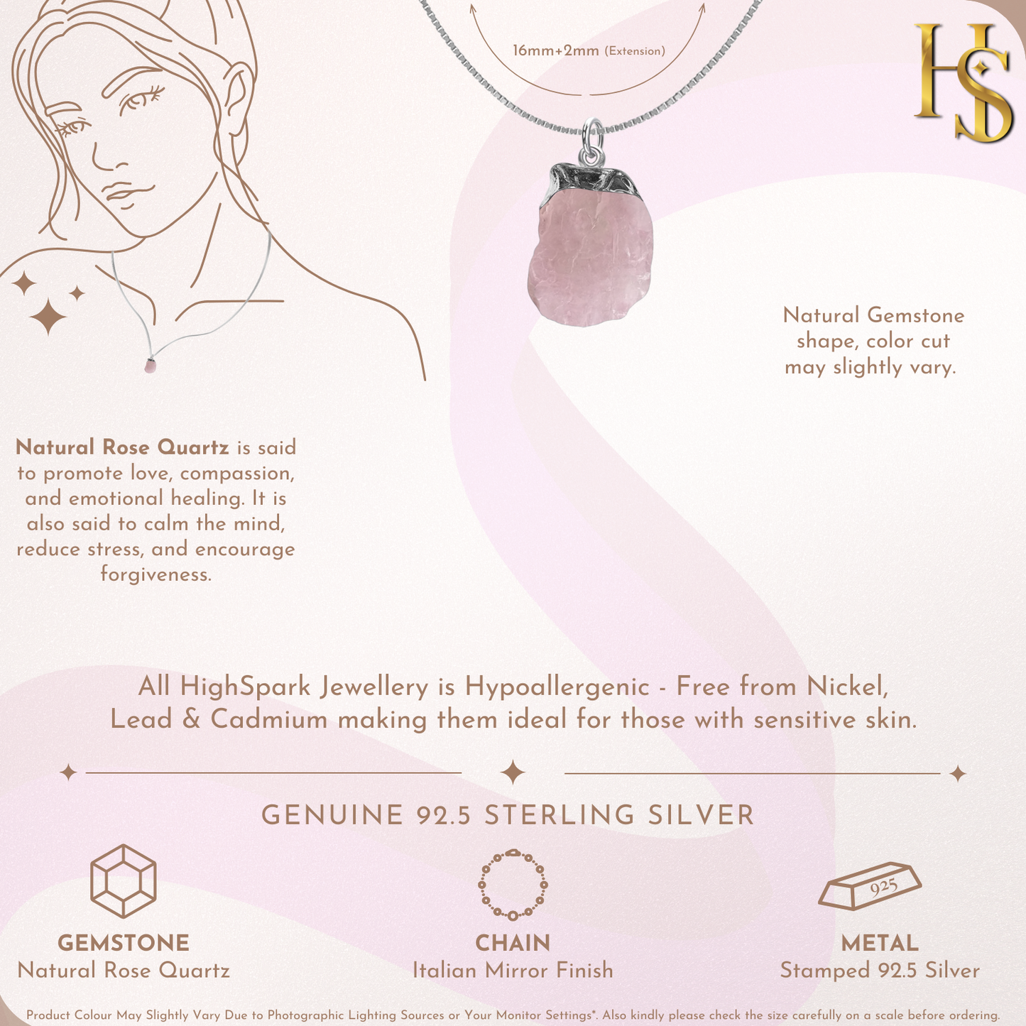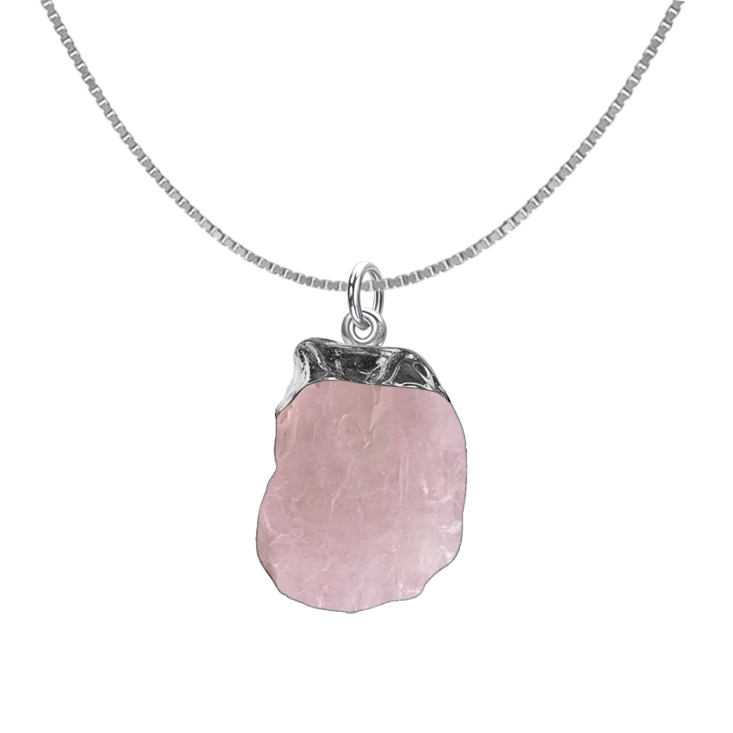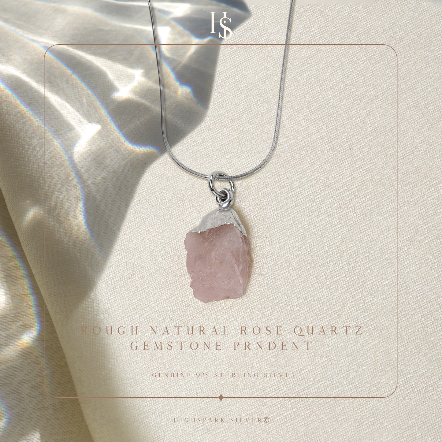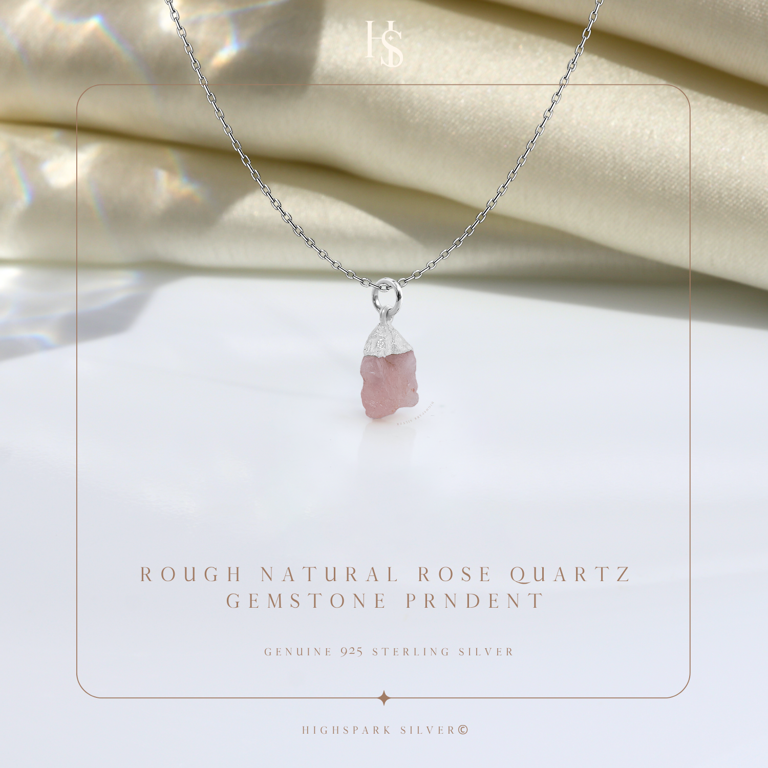 Natural Raw Gemstone Rose Quartz Rough Cut Pendant in 92.5 Sterling Silver