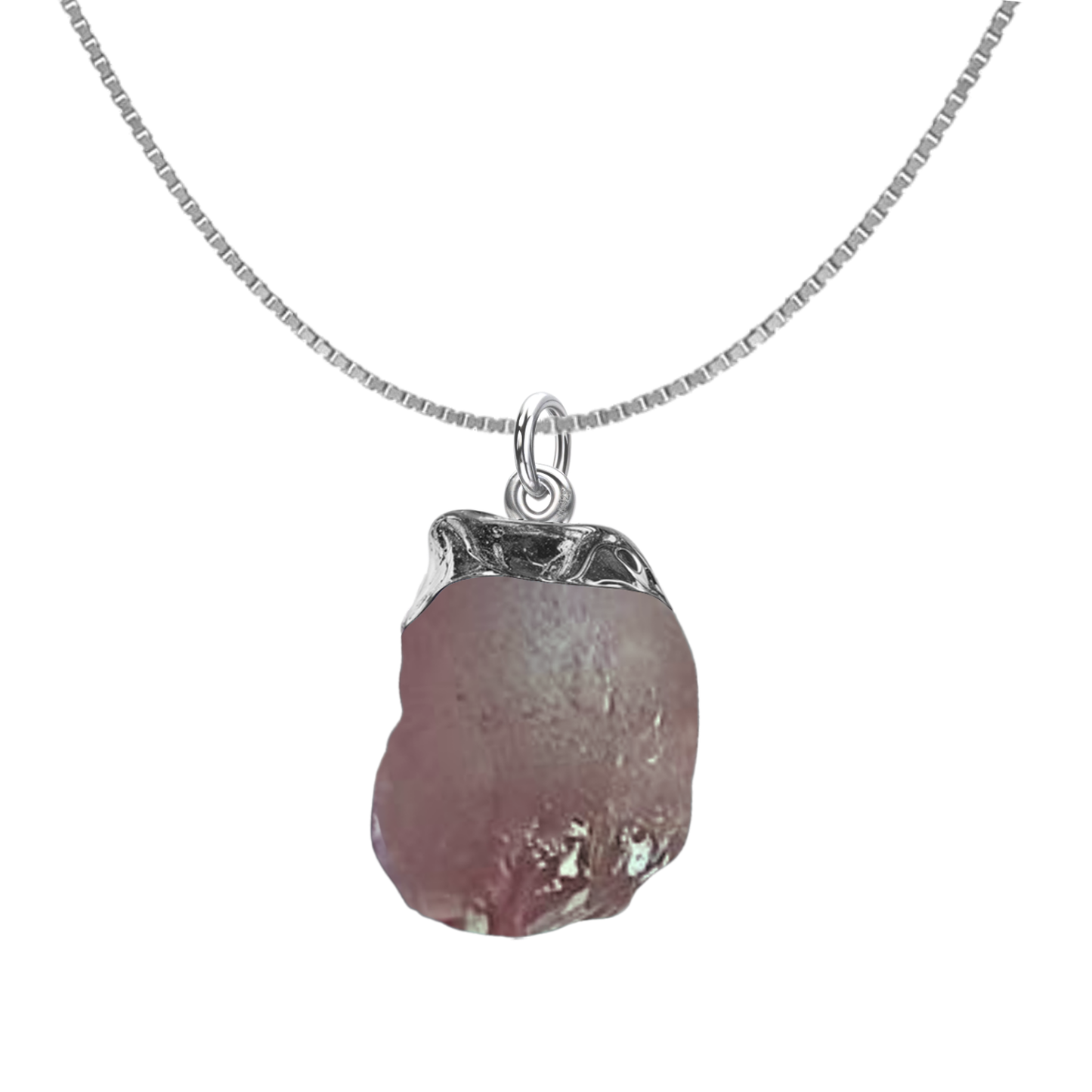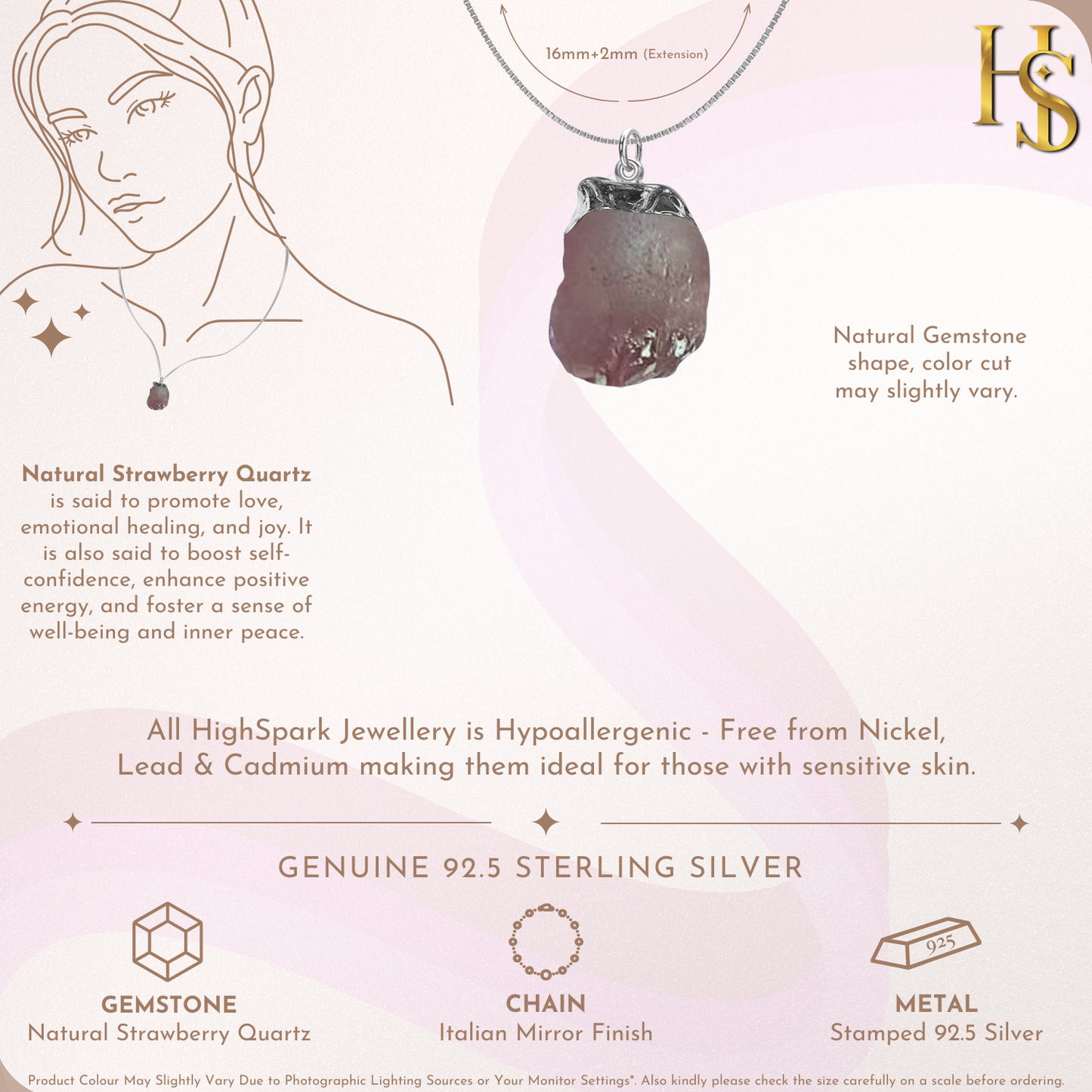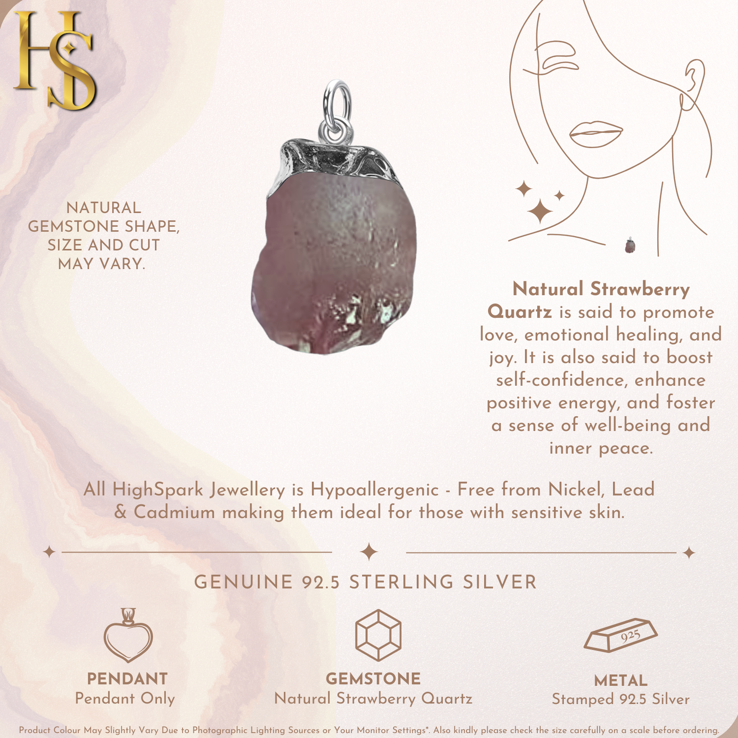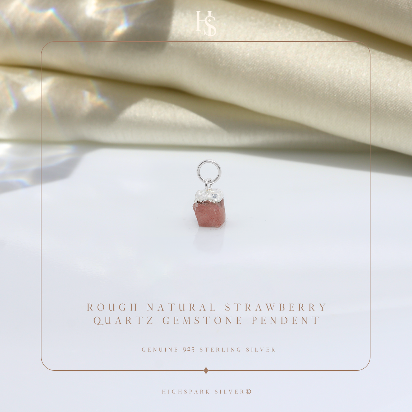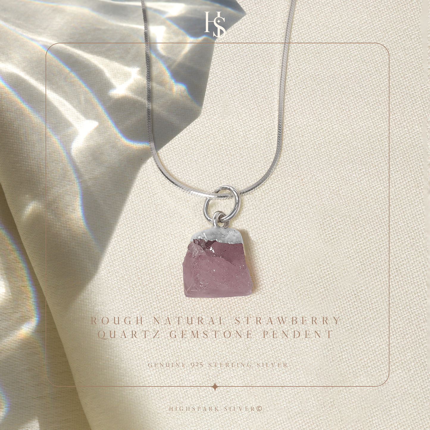 Natural Raw Gemstone Strawberry Quartz Rough Cut Pendant in 92.5 Sterling Silver