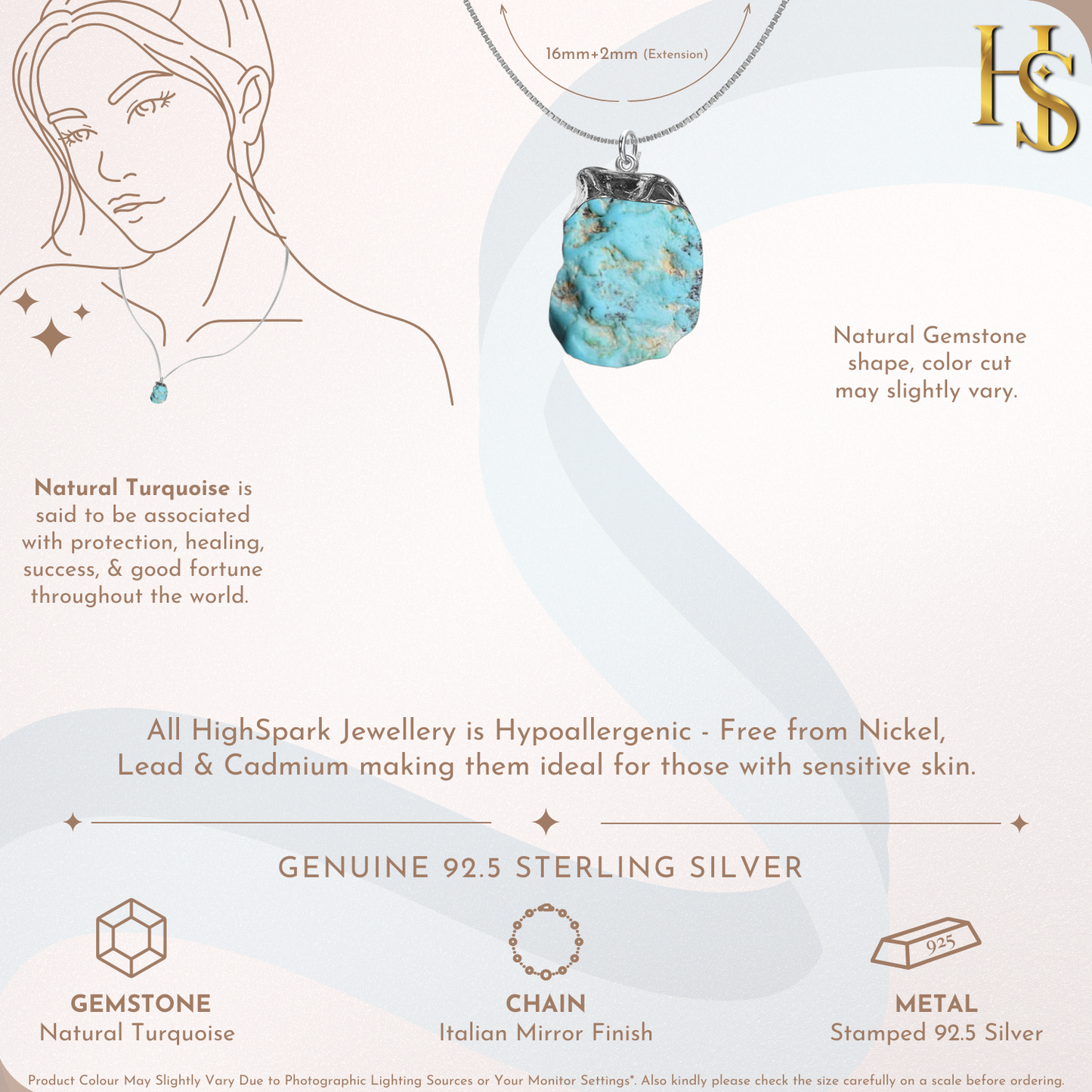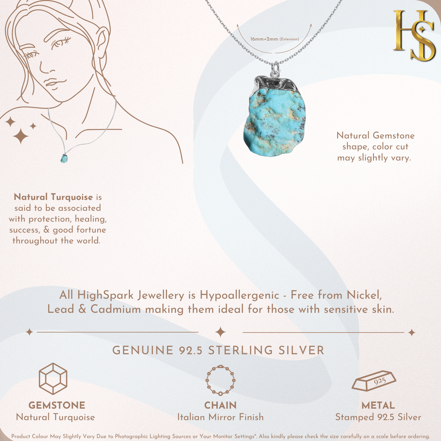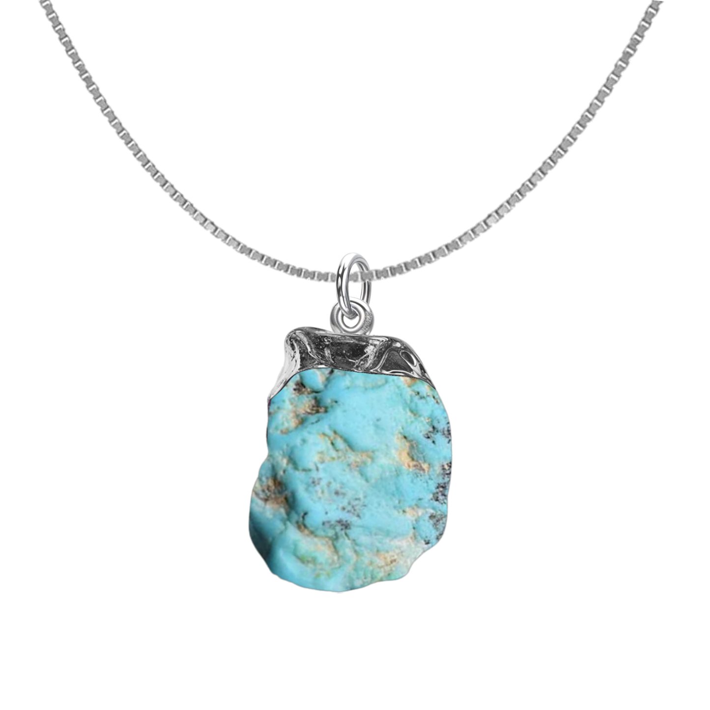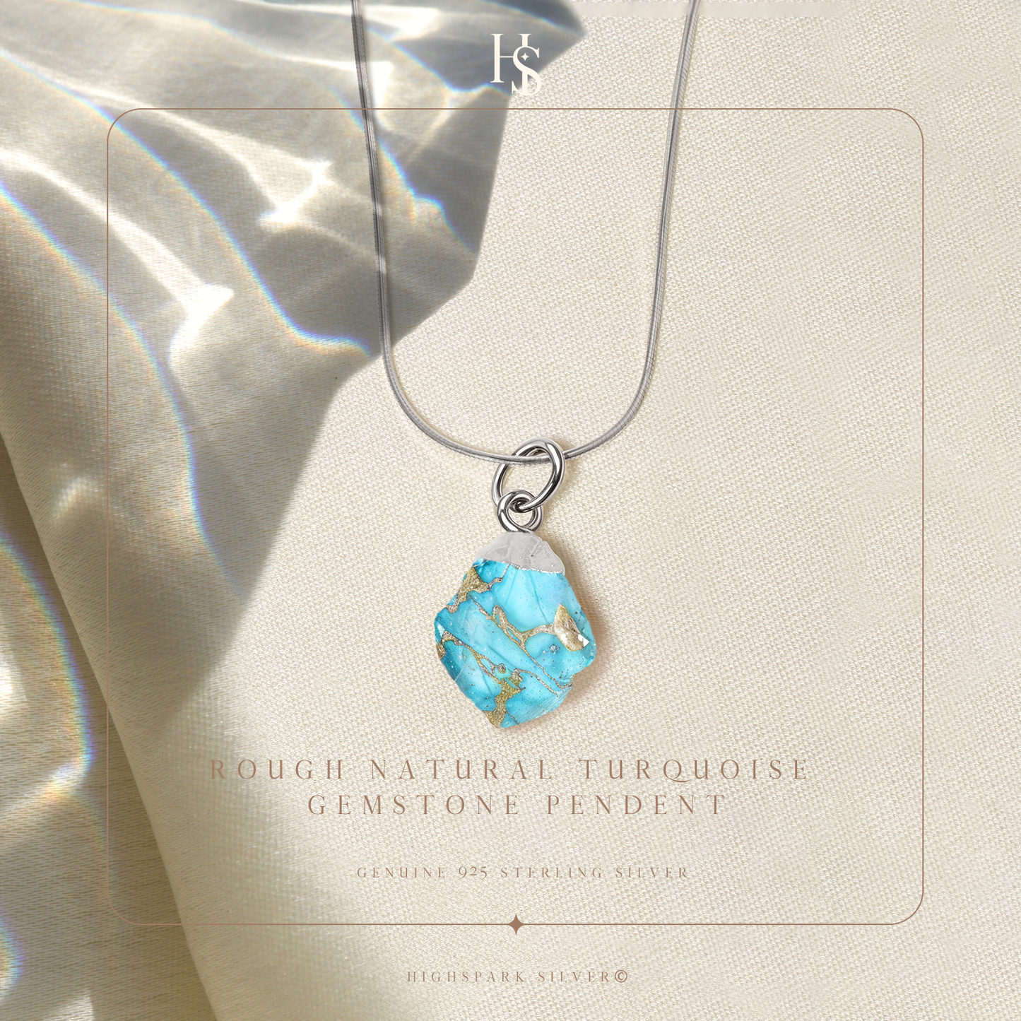 Natural Raw Gemstone Turquoise Rough Cut Pendant in 92.5 Sterling Silver