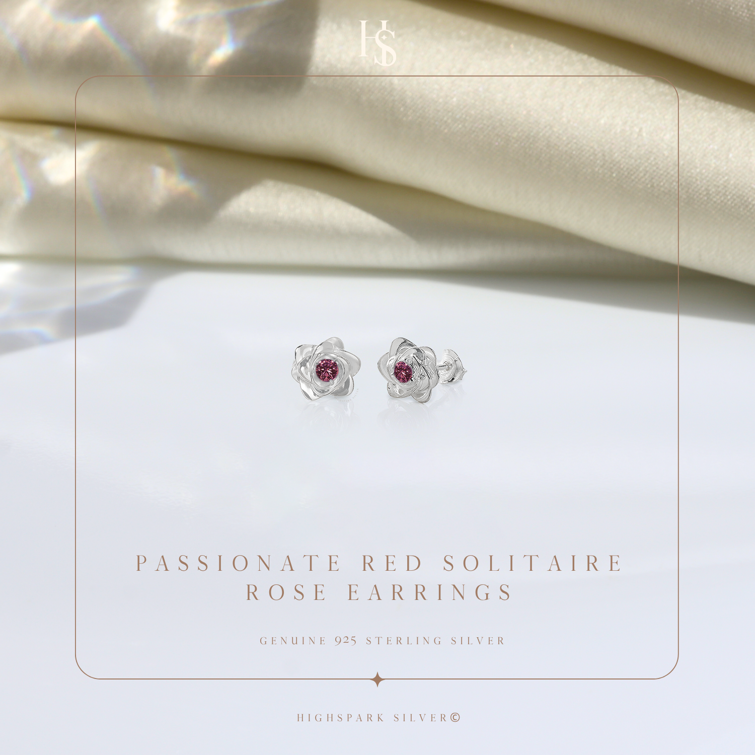 Passionate Red Solitaire Rose Earrings in 925 Sterling Silver for Women