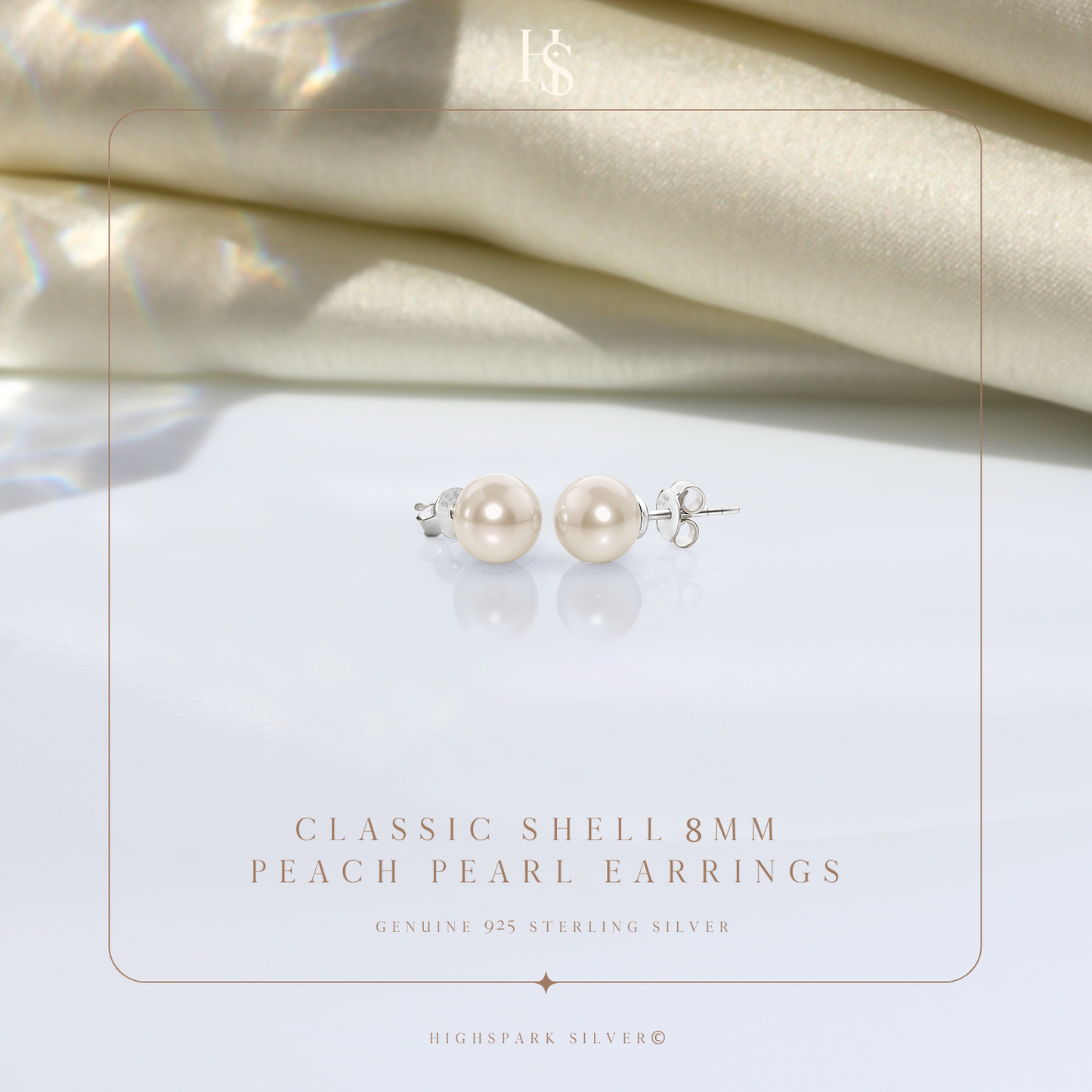 Pearl Classic Stud Earrings - Brilliant Lustre Peach Pearls