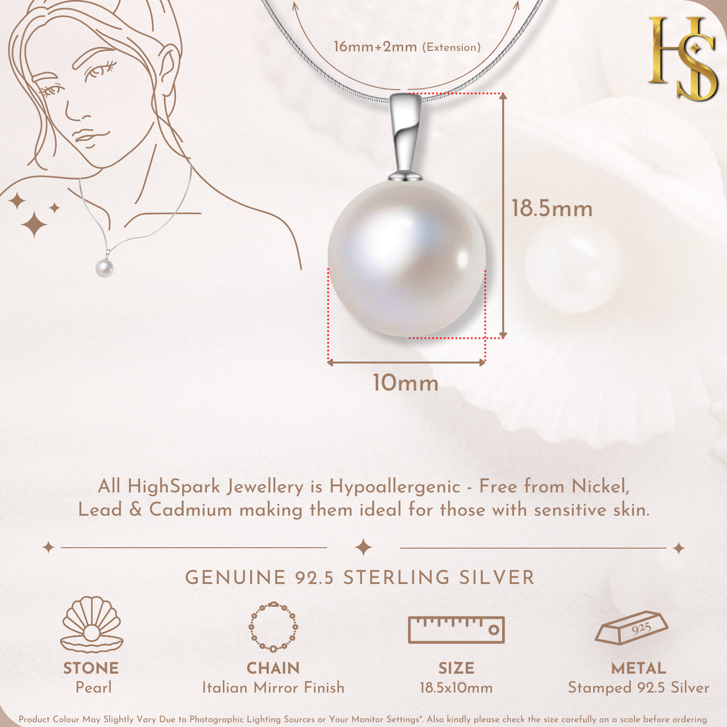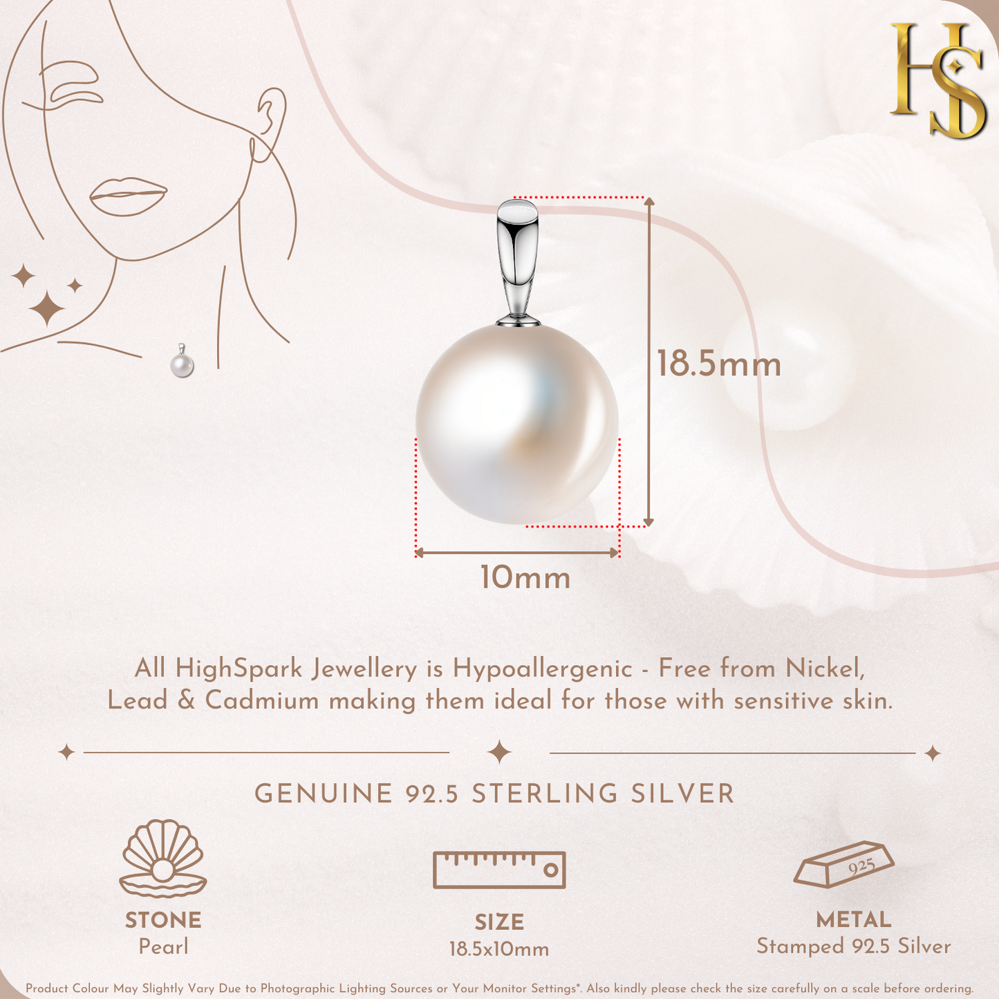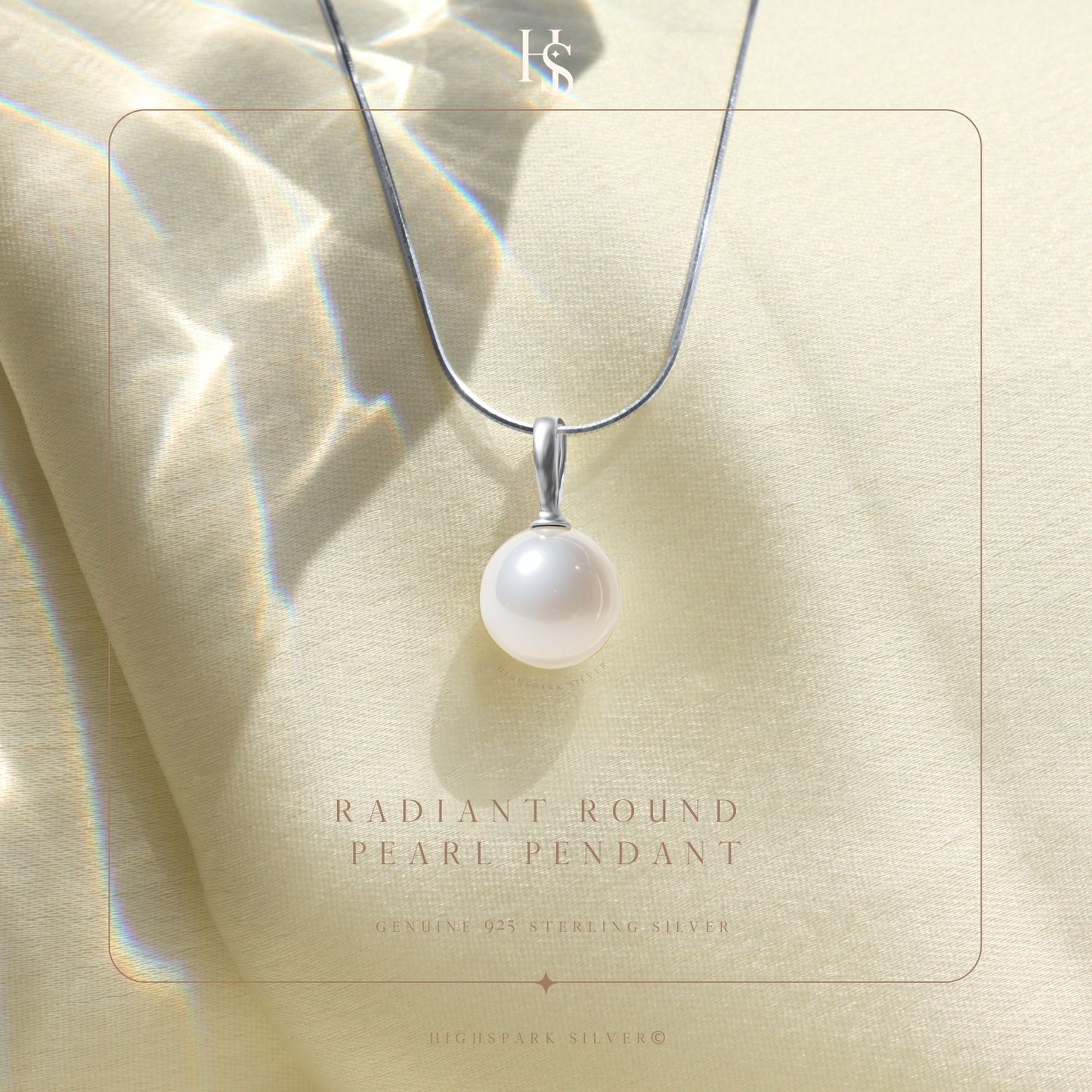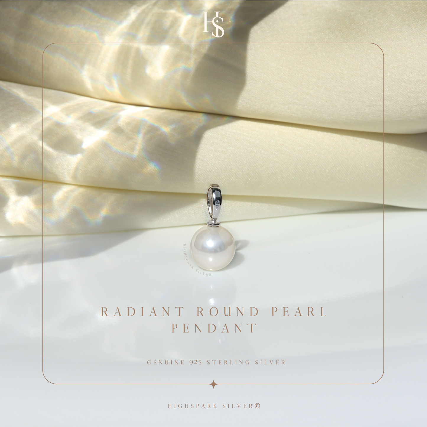 Radiant Round Pearl Pendant in 92.5 Sterling Silver with Brilliant Luster Pearl