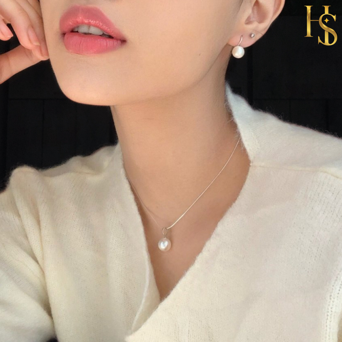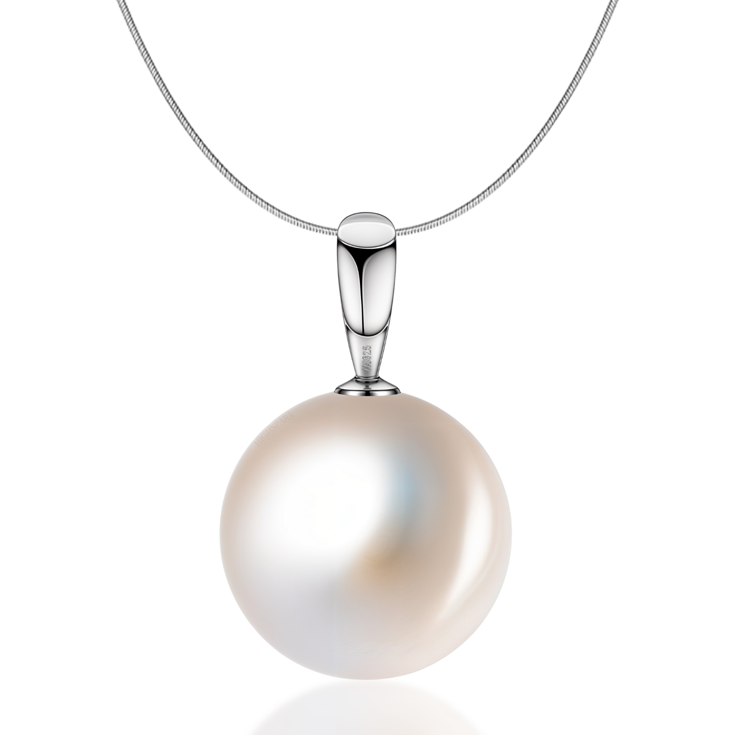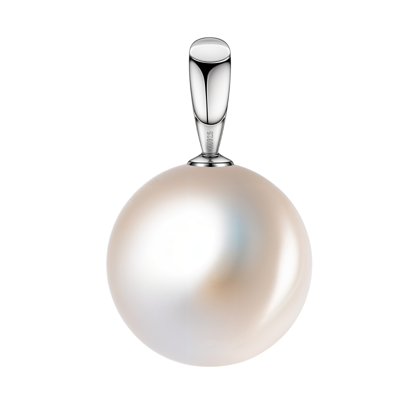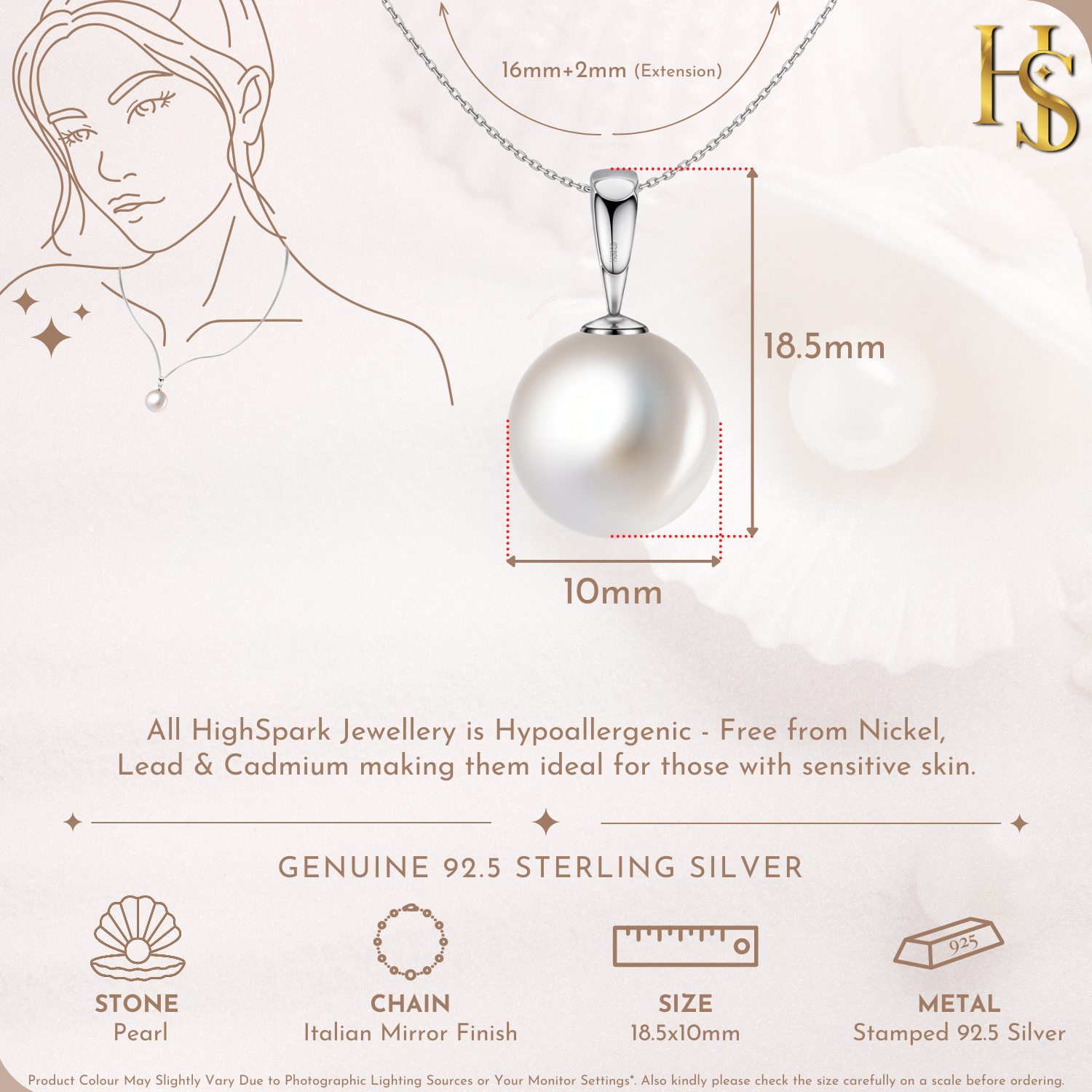 Radiant Round Pearl Pendant in 92.5 Sterling Silver with Brilliant Luster Pearl