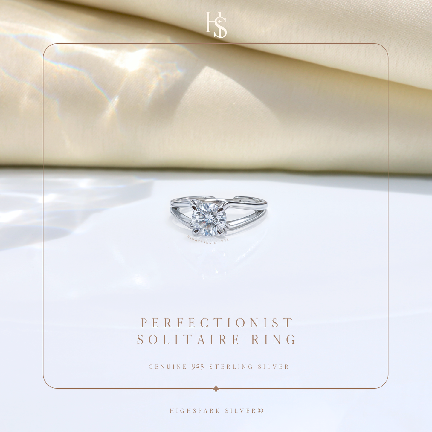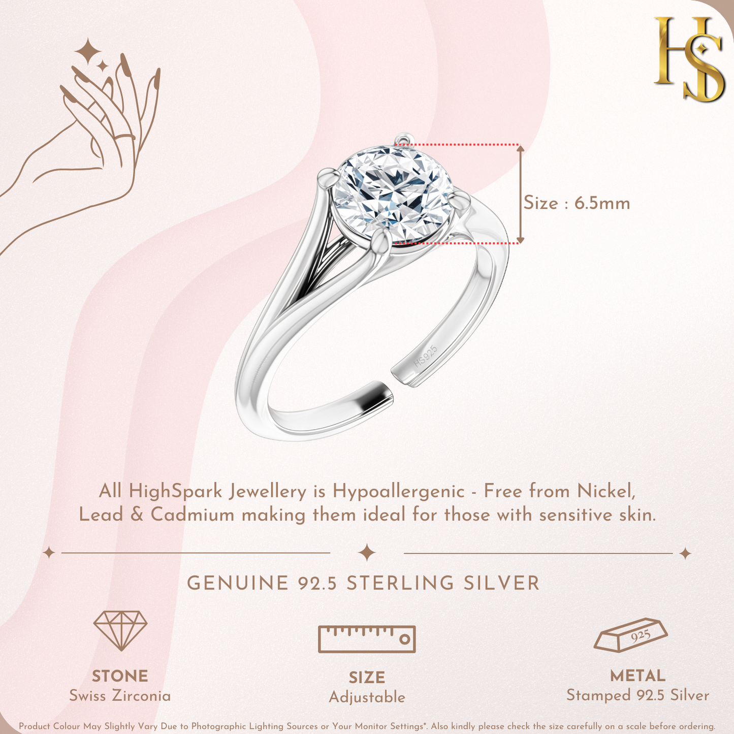 Perfectionist Solitaire Adjustable Ring in 92.5 Sterling Silver with Diamond like Brilliance Zirconia