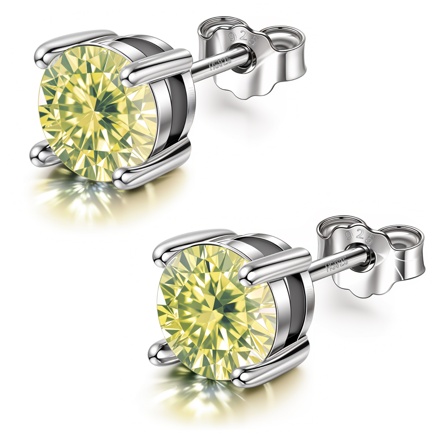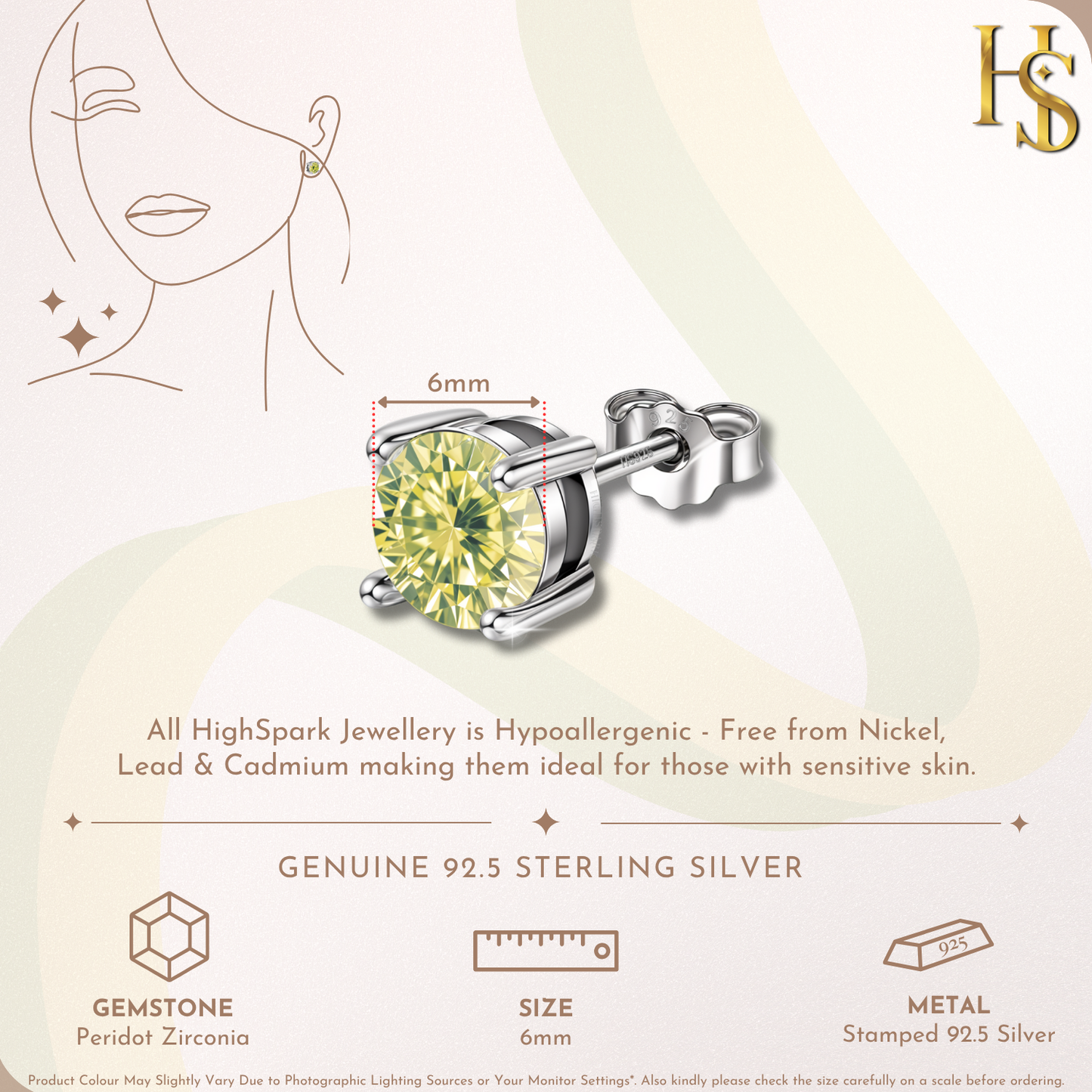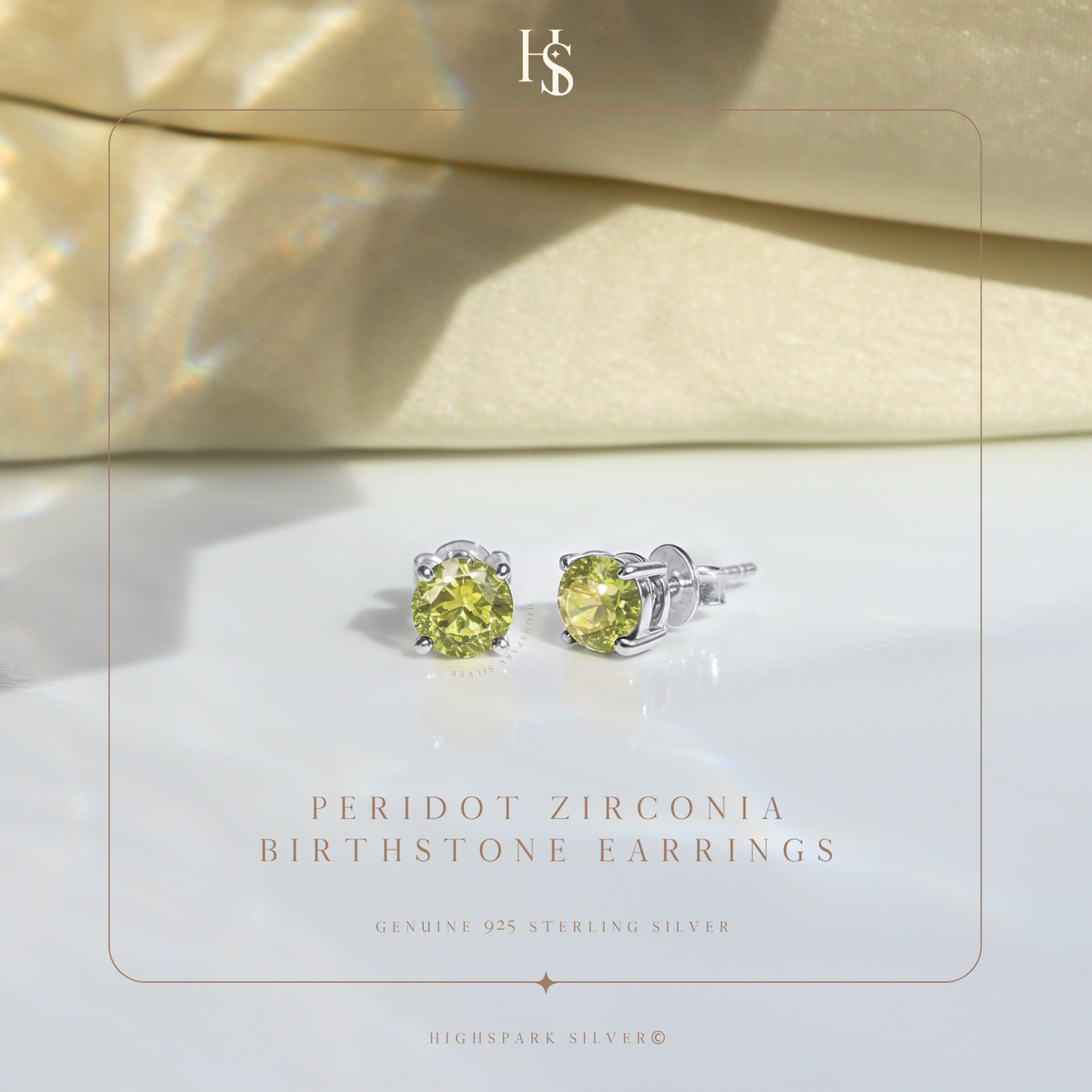 Women's Solitaire Birthstone Earrings - 925 Silver - August Peridot Sparkling Zirconia