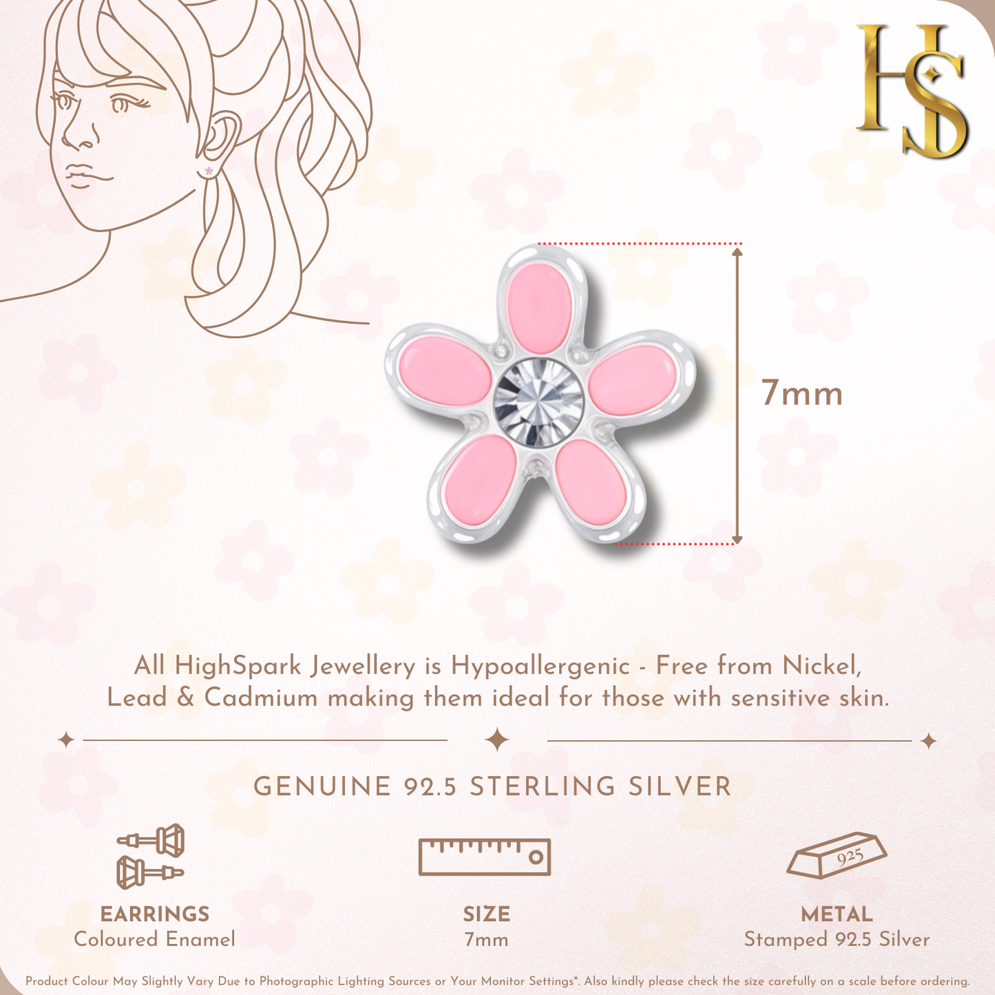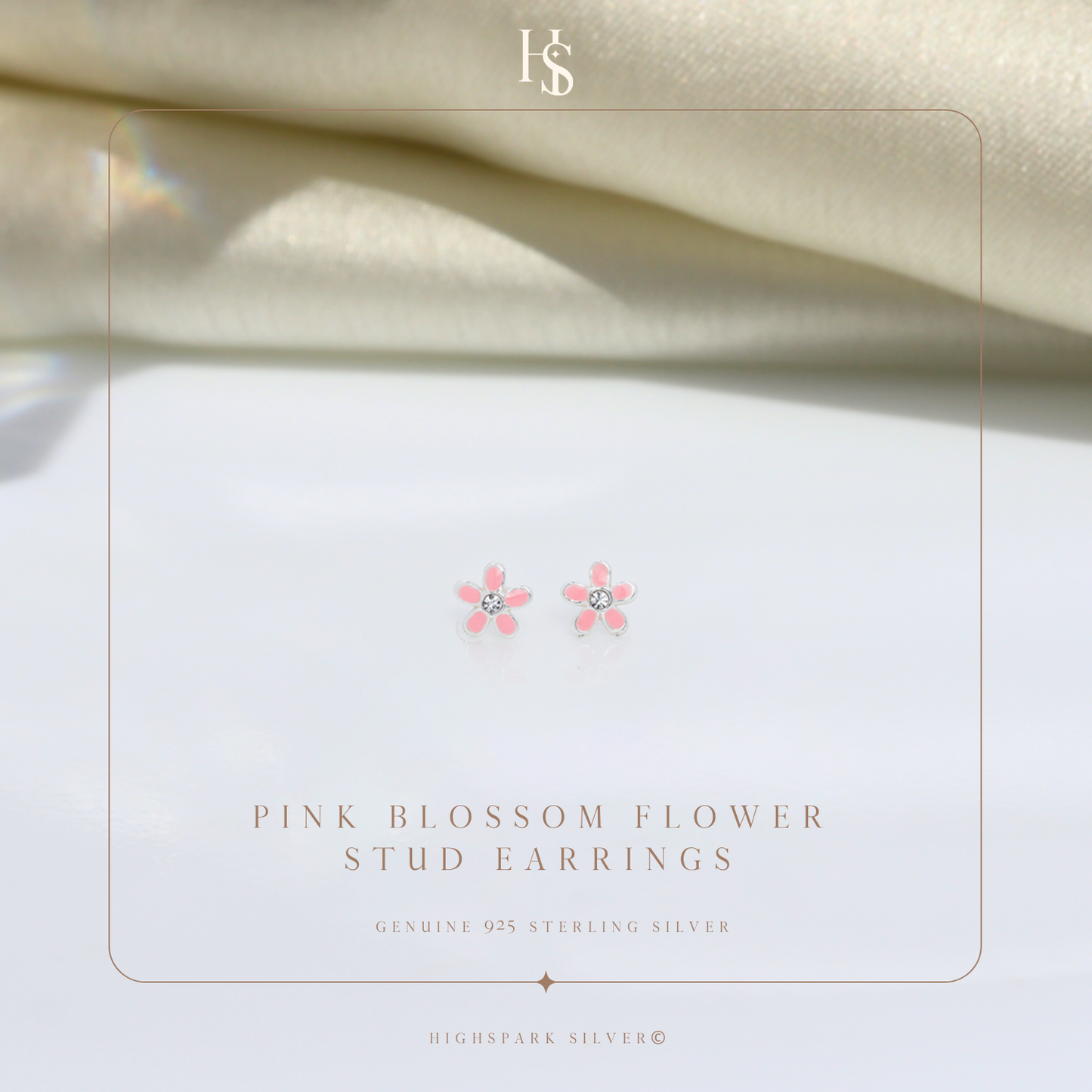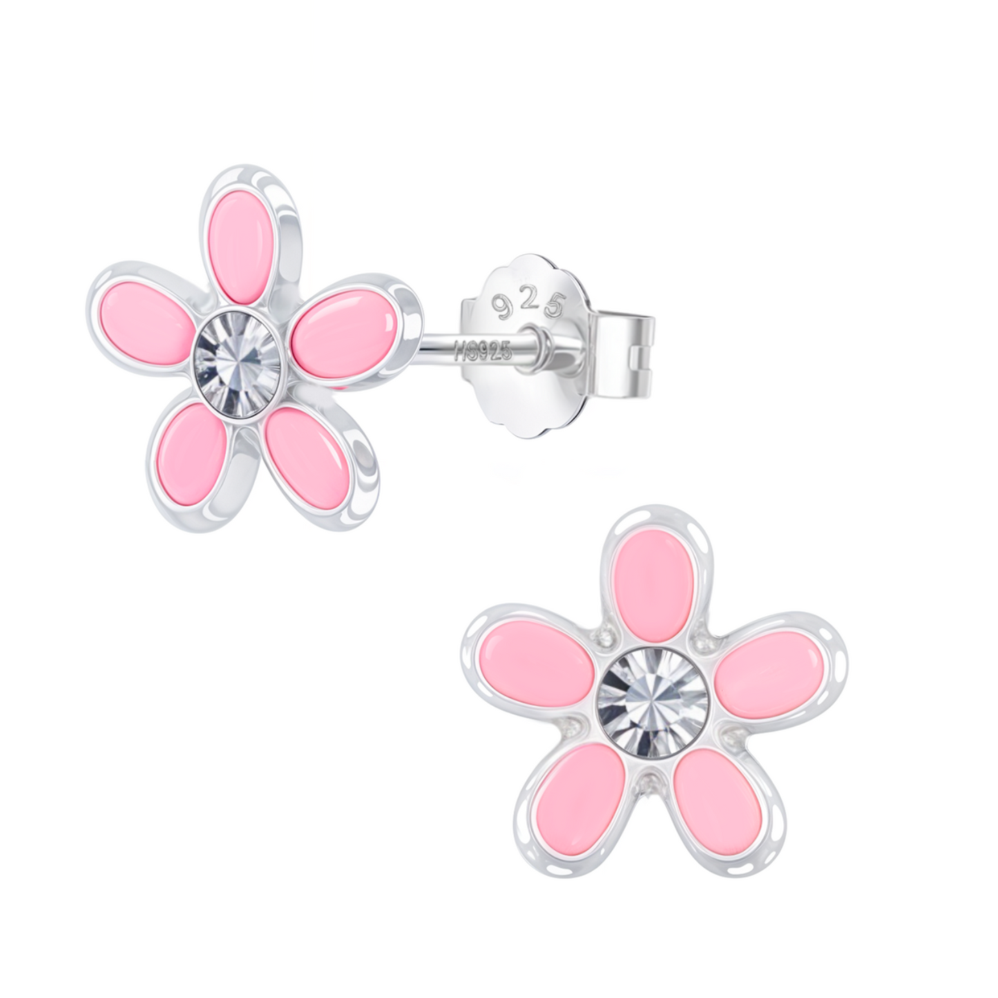 Pink Blossom Flower Cute Enamel Stud Earrings in 925 Sterling Silver