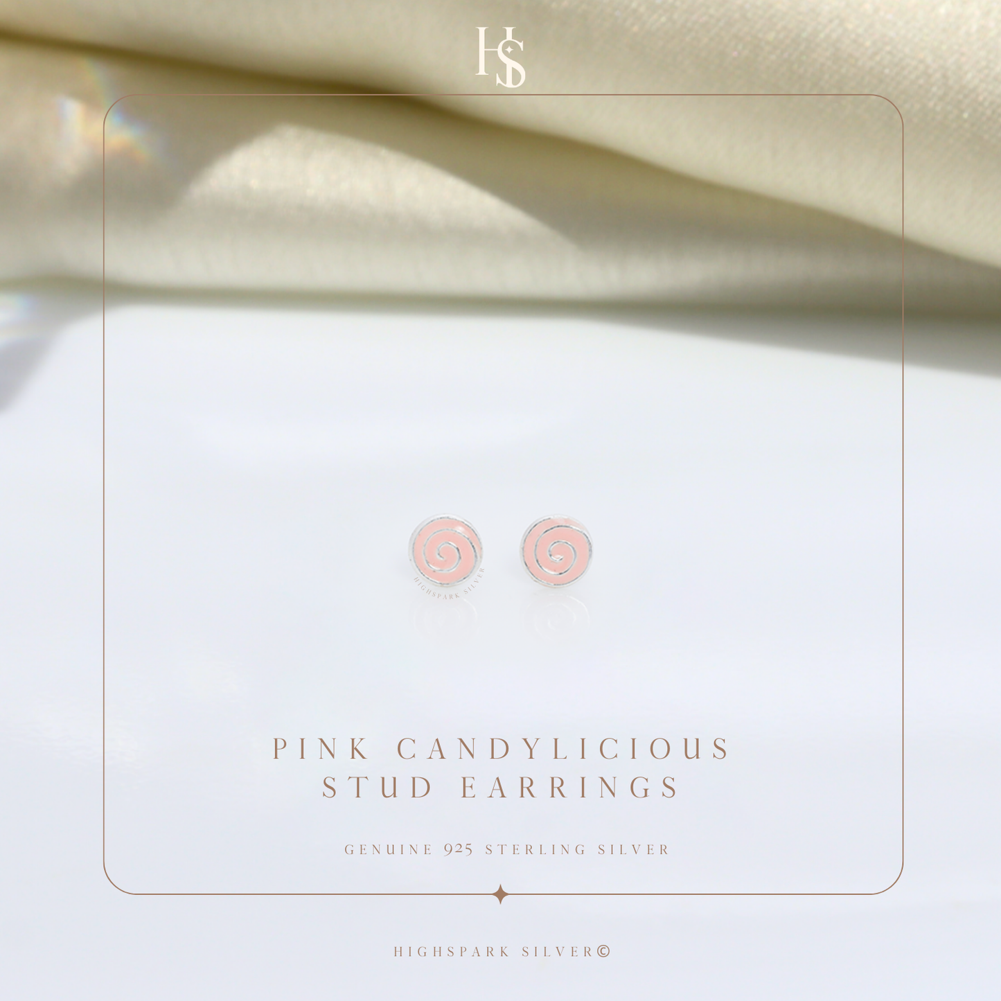Pink Candylicious Cute Enamel Stud Earrings in 925 Sterling Silver