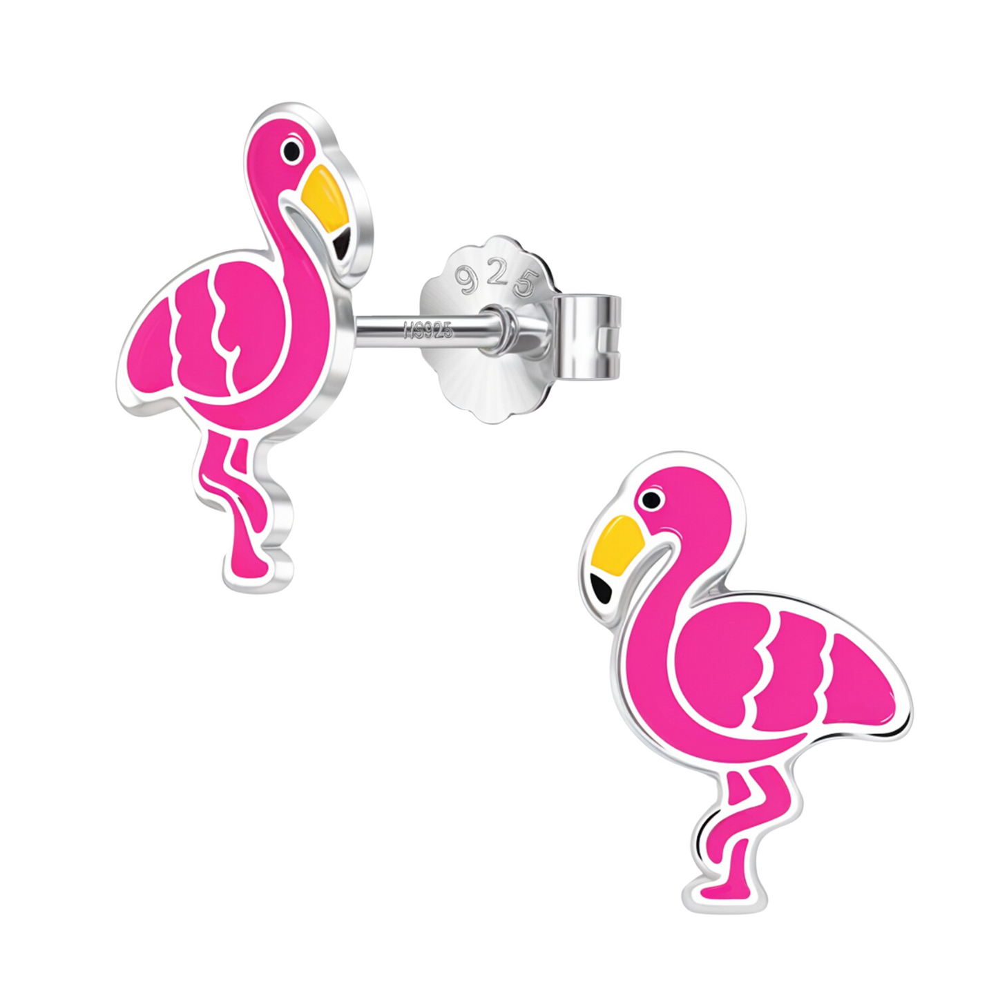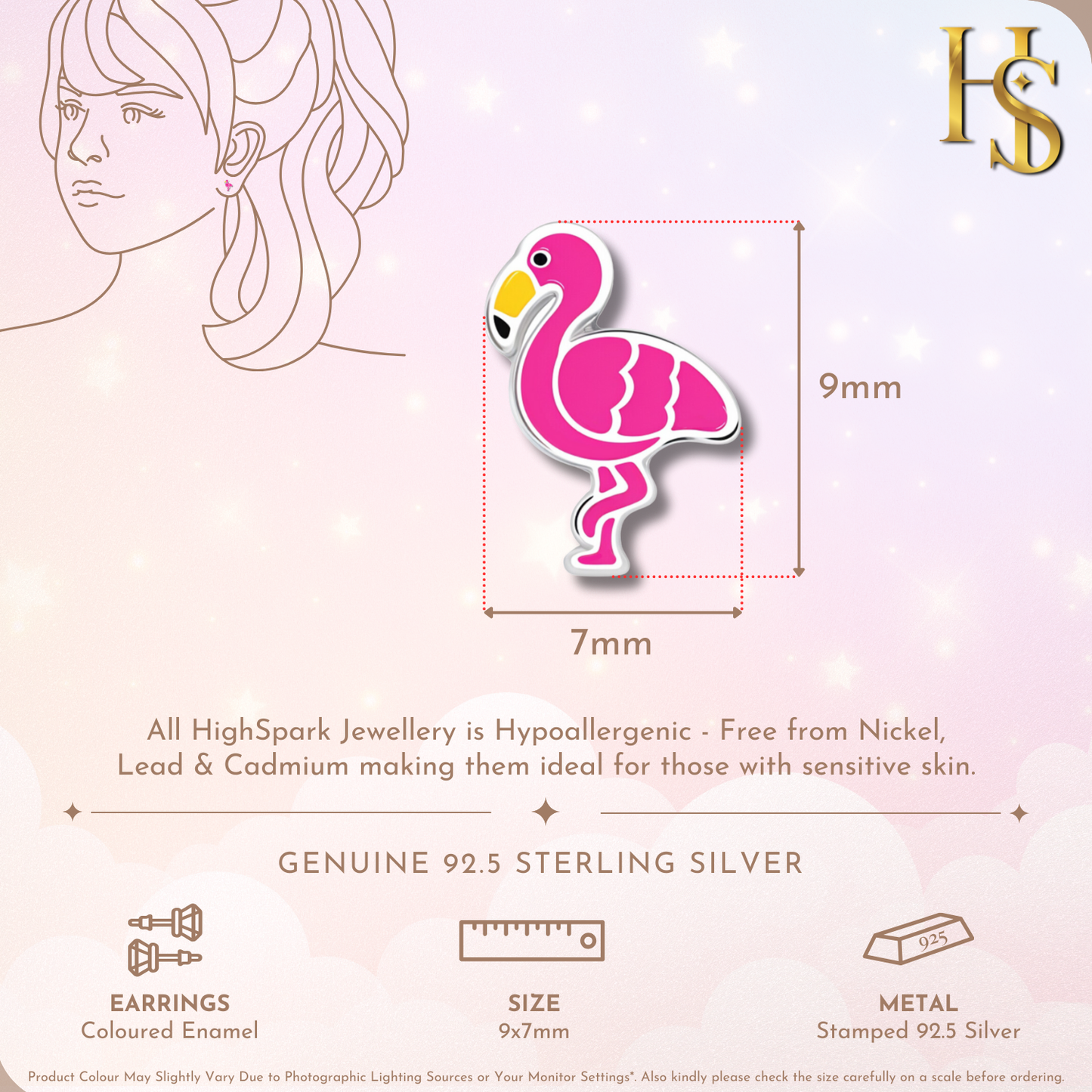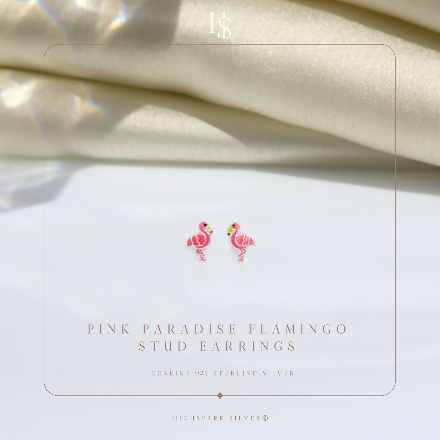 Pink Paradise Flamingo Cute Enamel Stud Earrings in 925 Sterling Silver