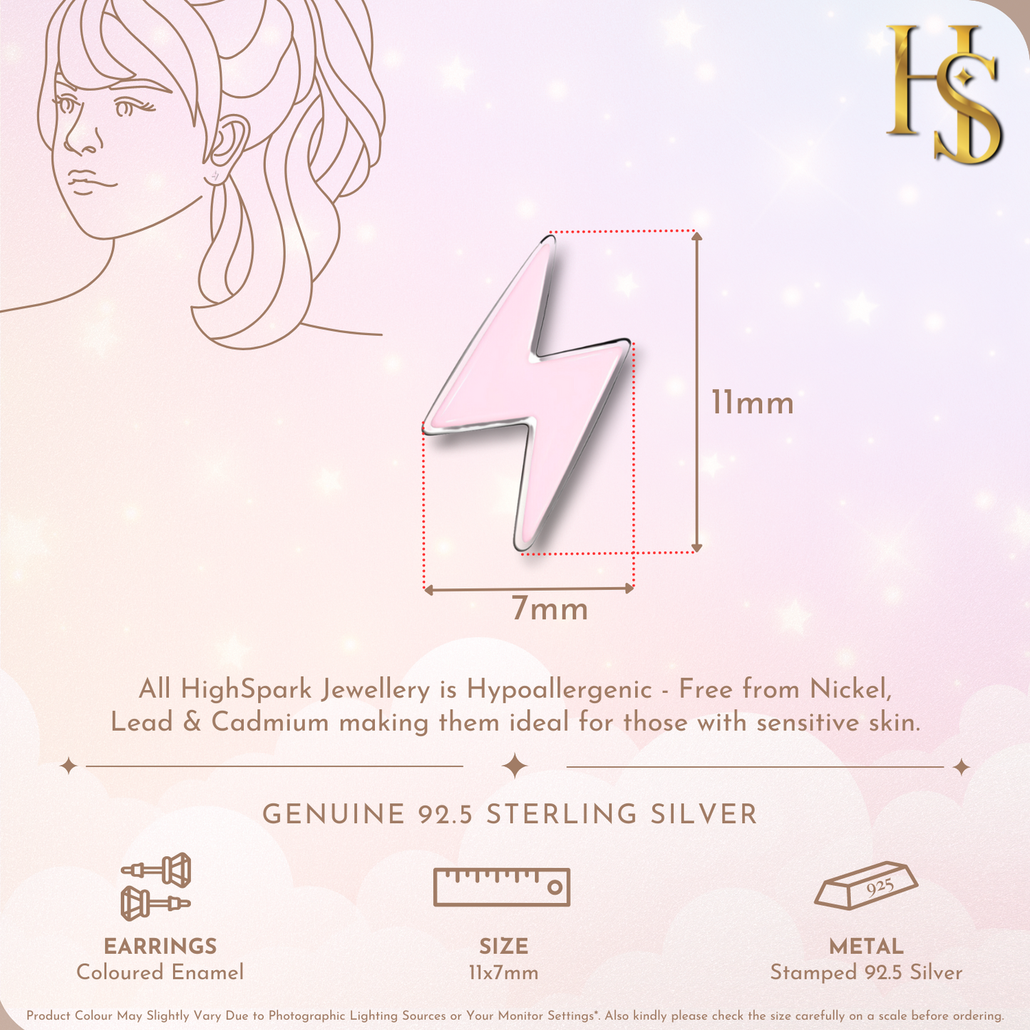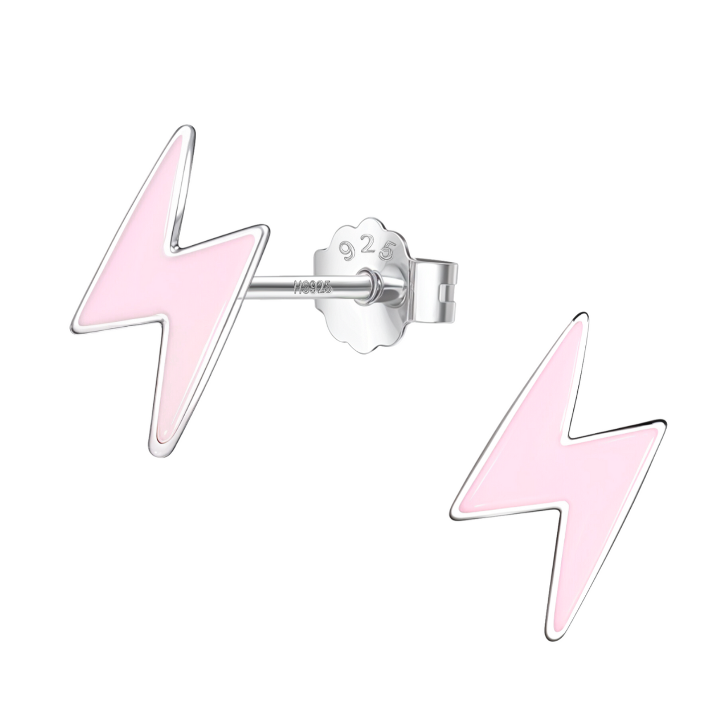 Pink Thunder Spark Cute Enamel Stud Earrings in 925 Sterling Silver