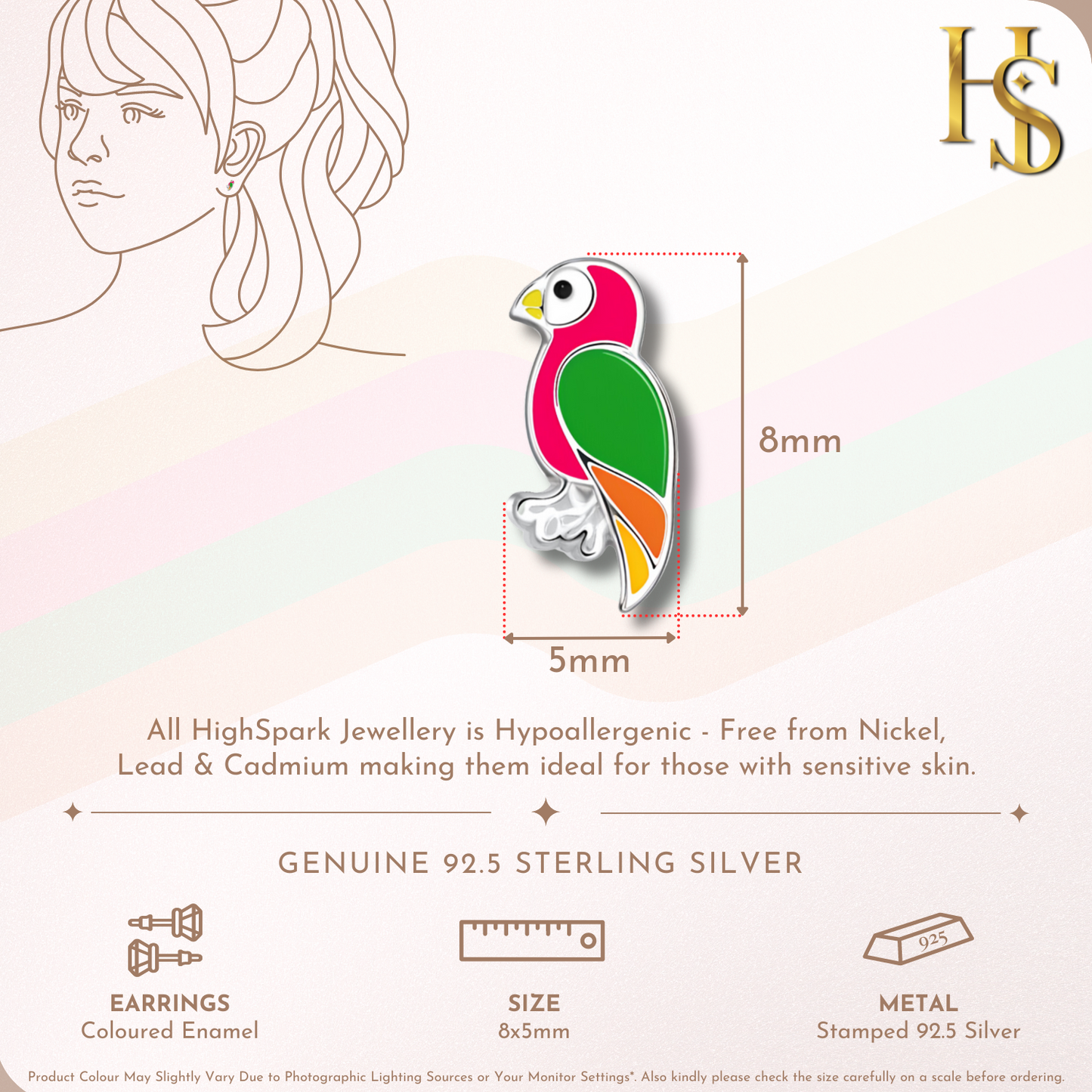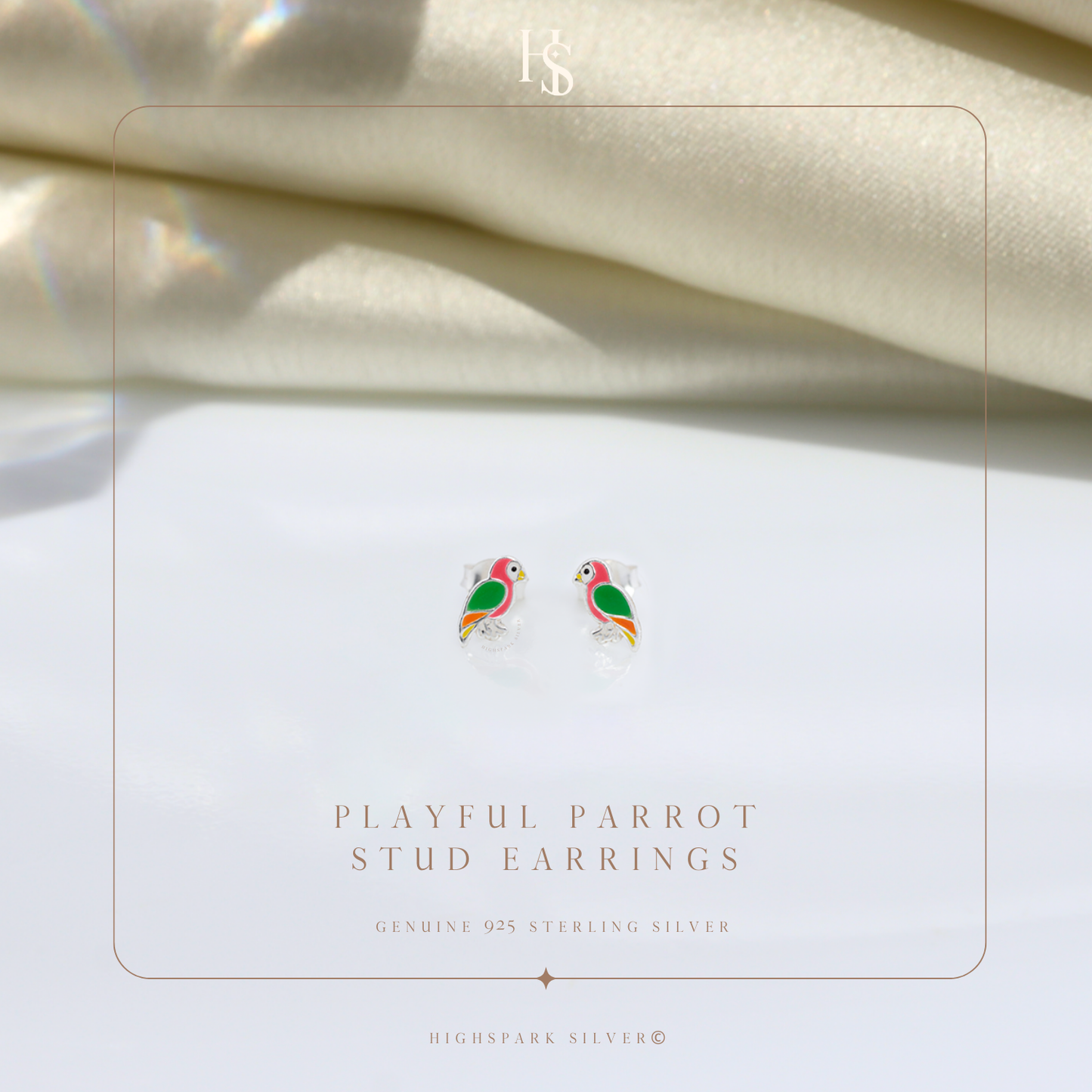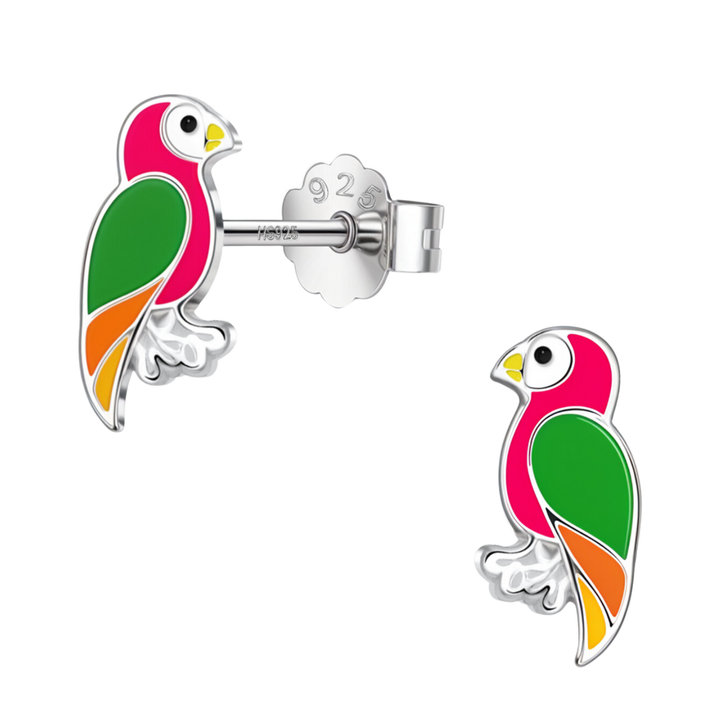 Playful Parrot Cute Enamel Stud Earrings in 925 Sterling Silver