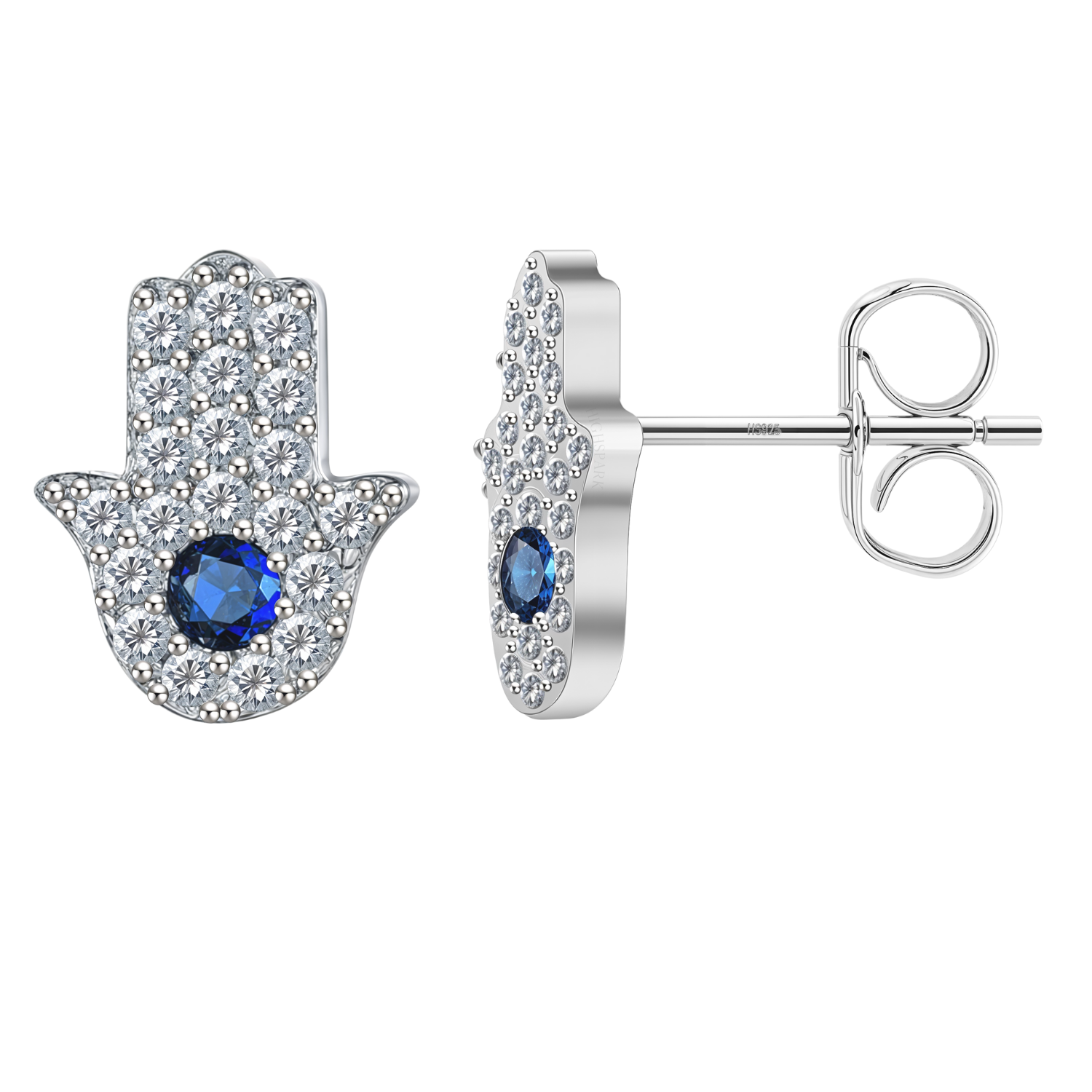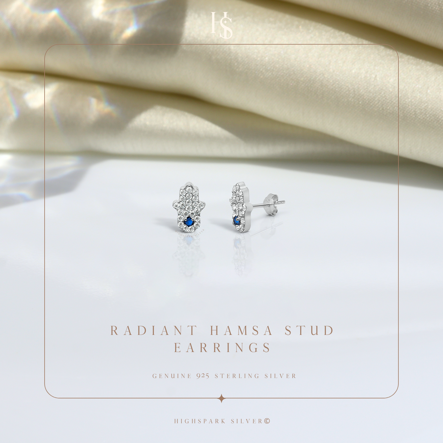 Radiance Hamsa Stud Earrings in 925 Sterling Silver For Women