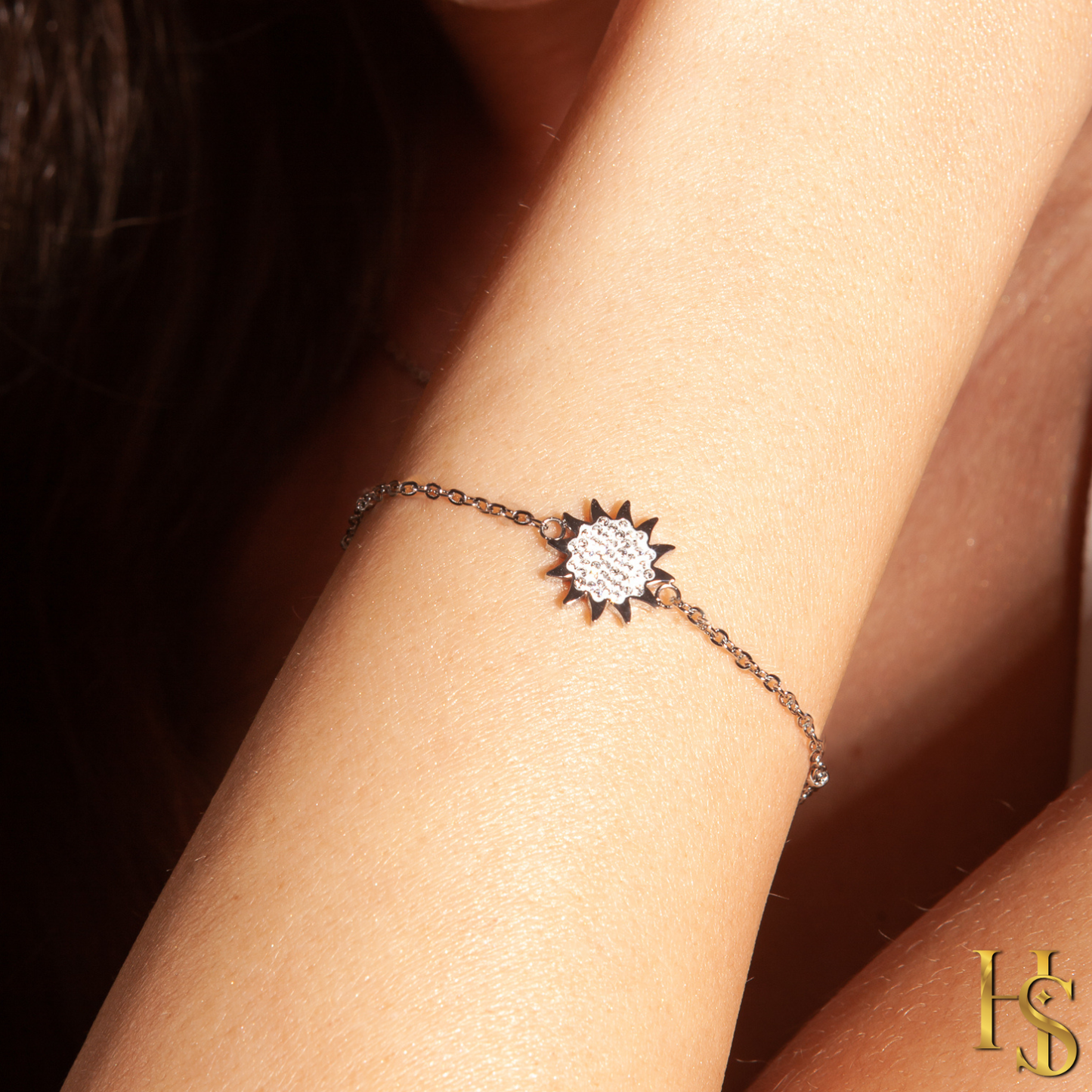 Radiant Sun Charm Bracelet in 925 Sterling Silver for Women With Diamond like Brilliance Zirconia