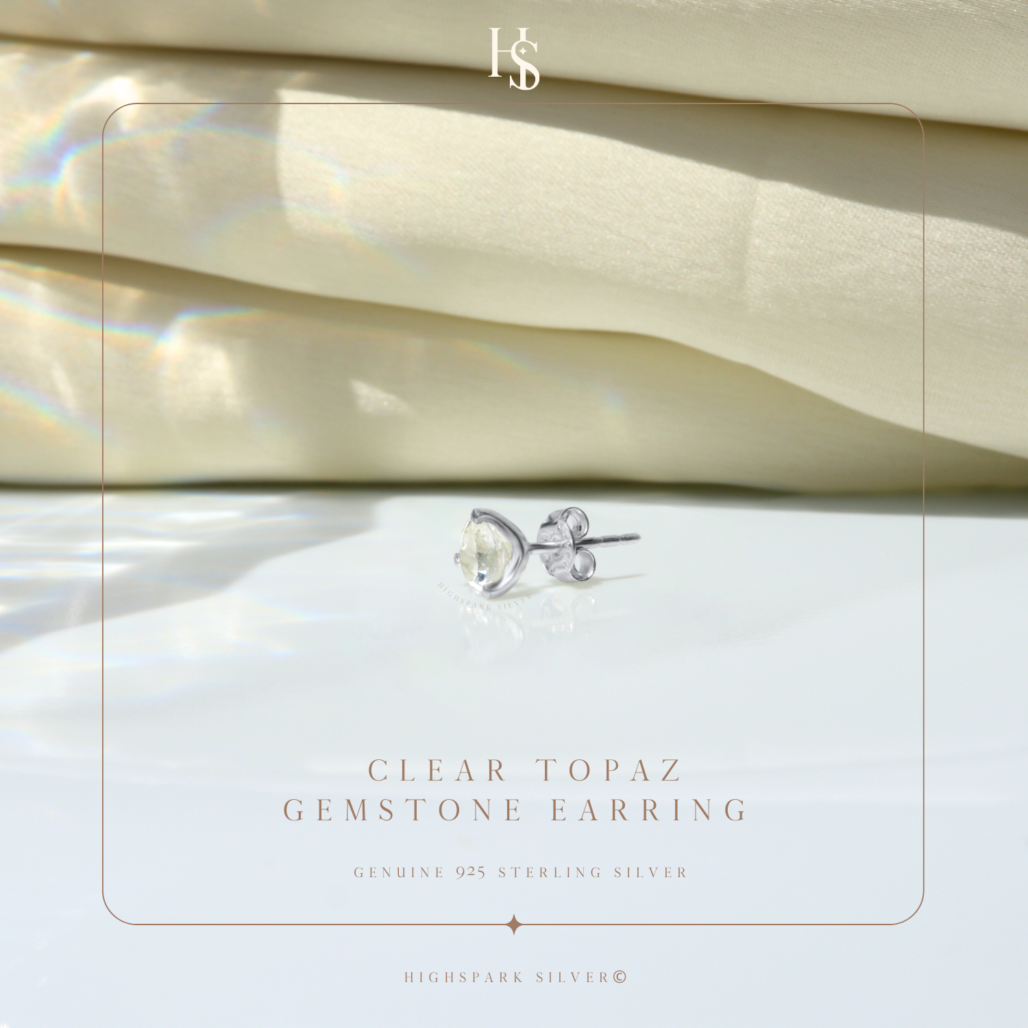 Real Clear Quartz Gemstone Earrings in 92.5 Sterling Silver For Men - 1 Piece Only