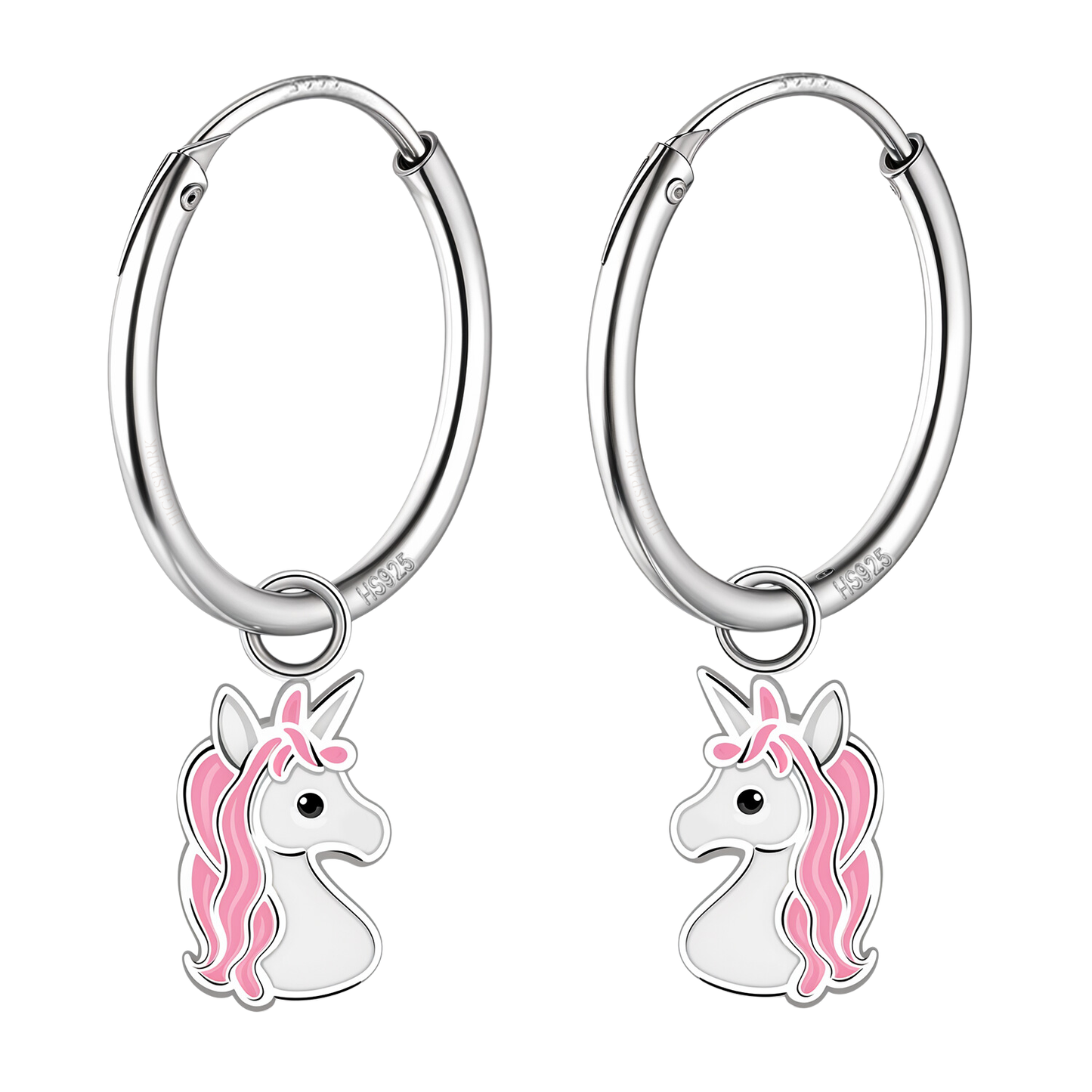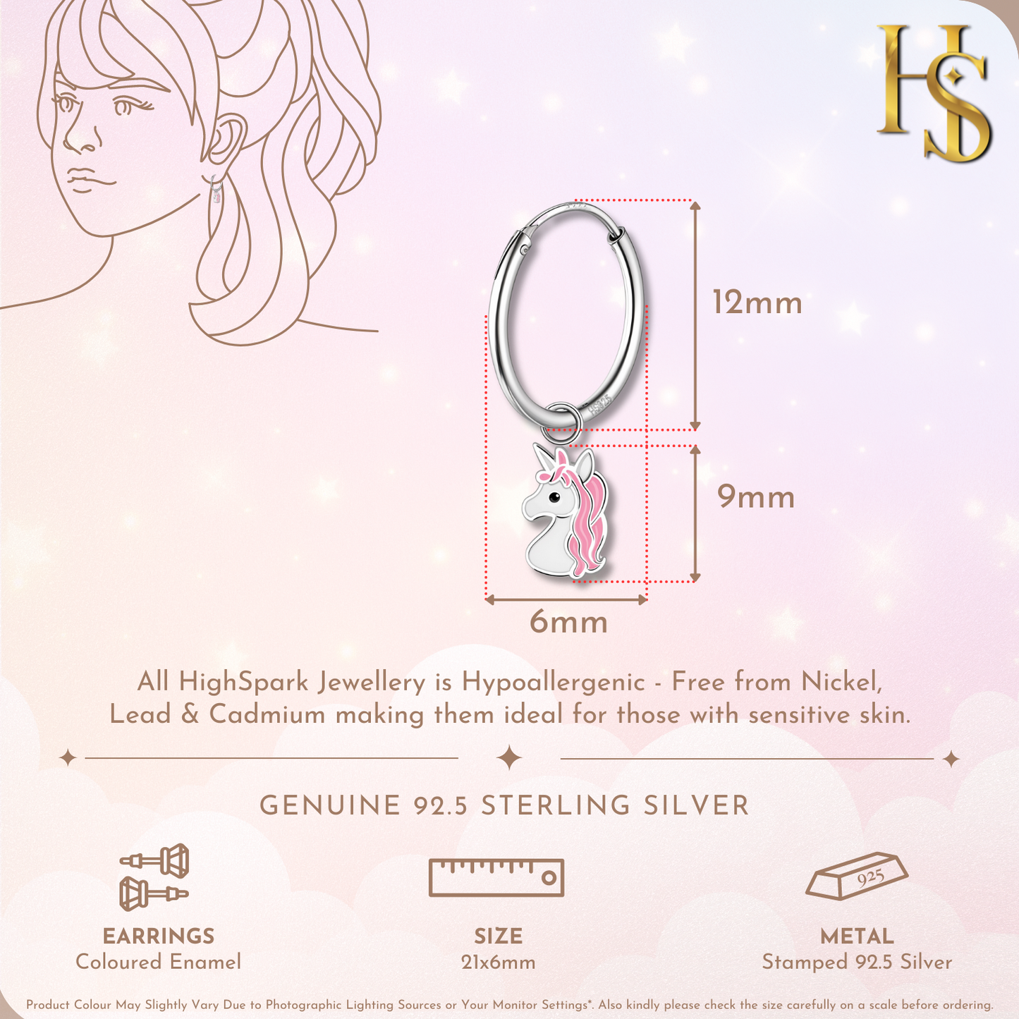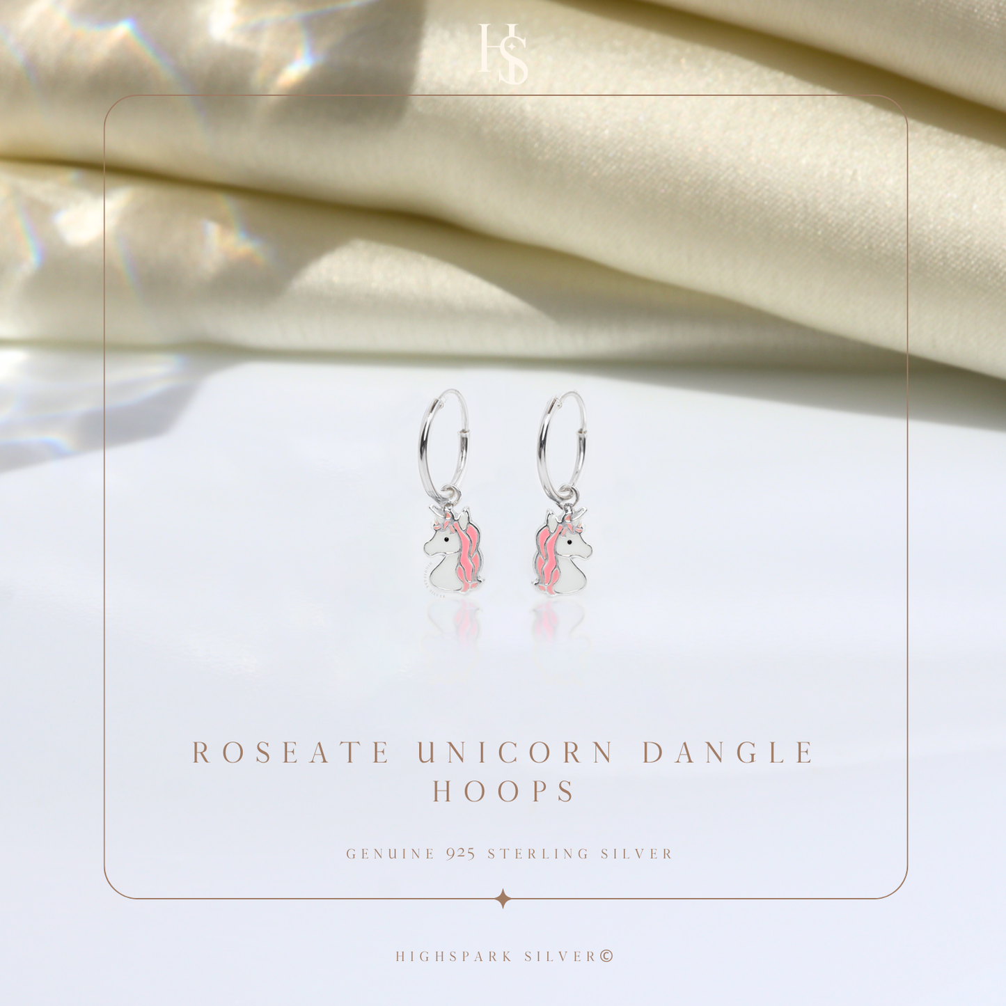 Roseate Unicorn Cute Enamel Dangle Hoops in 925 Sterling Silver