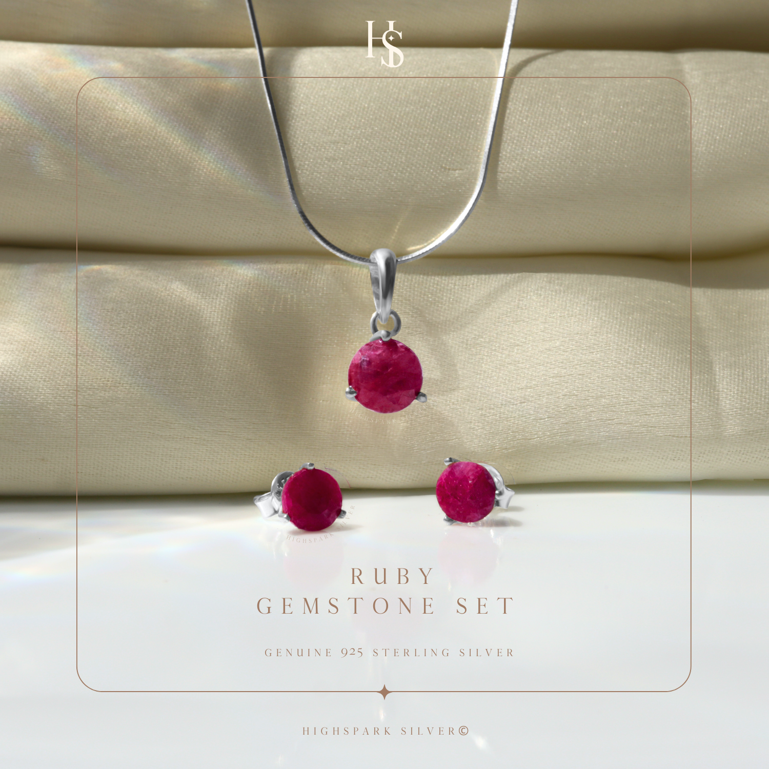 Ruby Gemstone Pendant-Set With Earrings in 925 Sterling Silver For Women