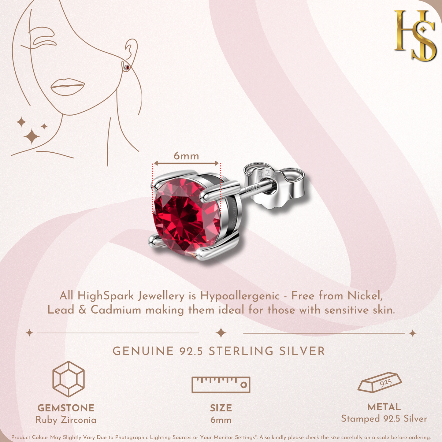 Women's Solitaire Birthstone Earrings - 925 Silver - July Ruby Sparkling Zirconia