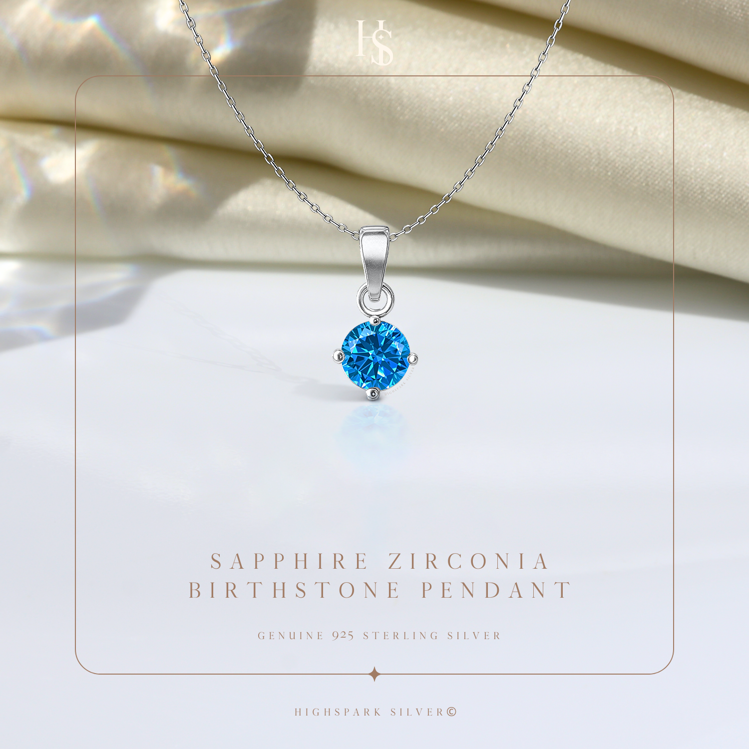 Sapphire Zirconia Birthstone Pendant With Chain in 925 Sterling Silver For Women